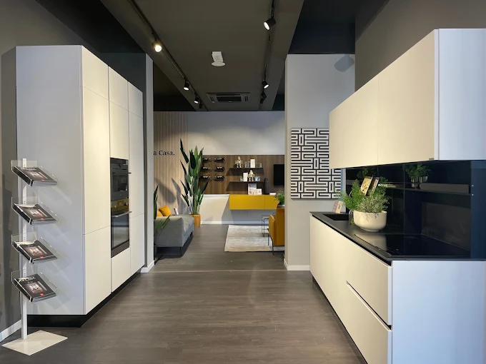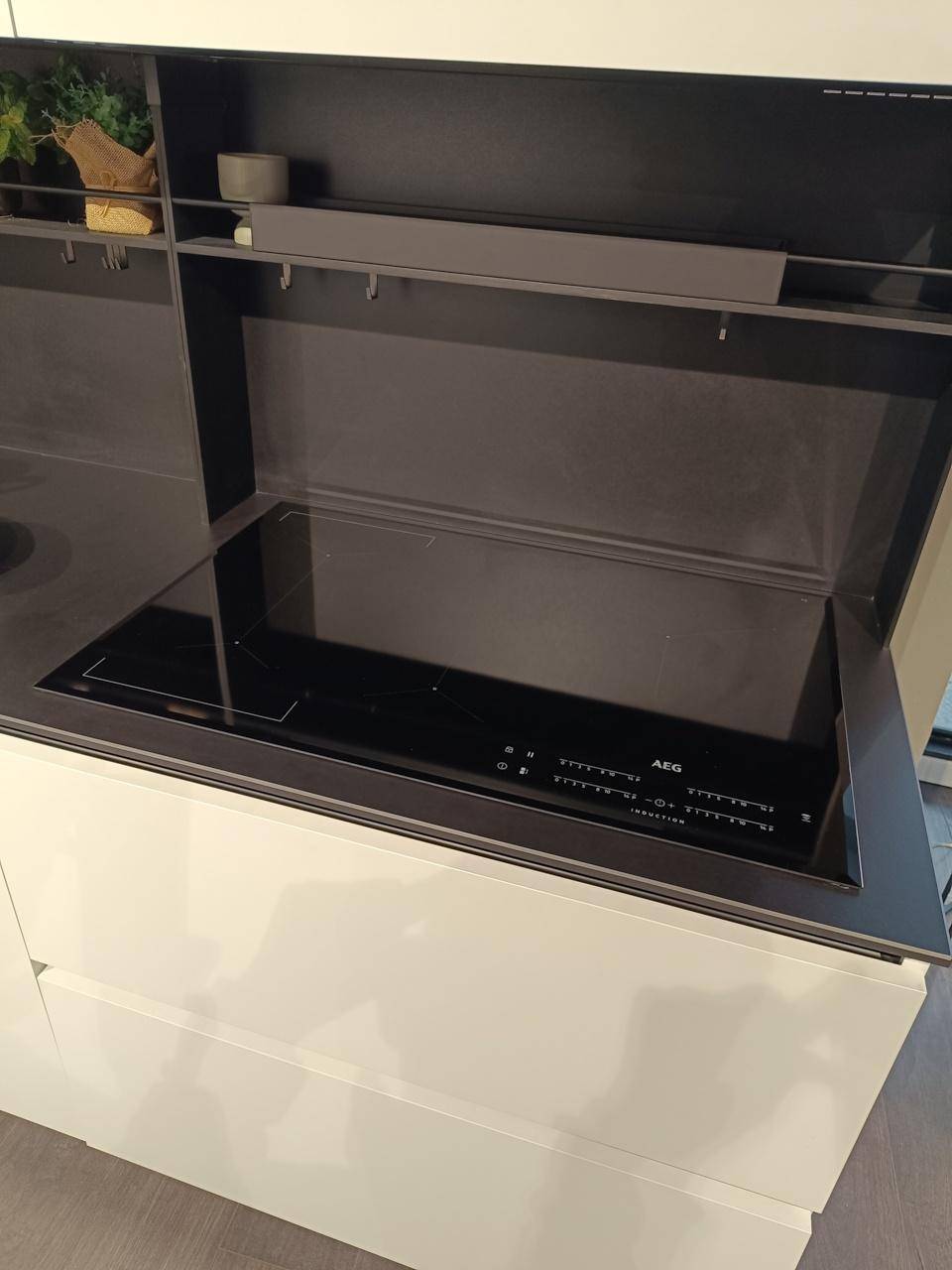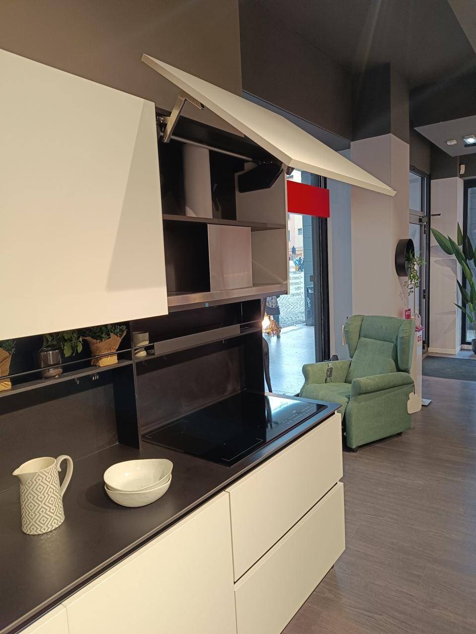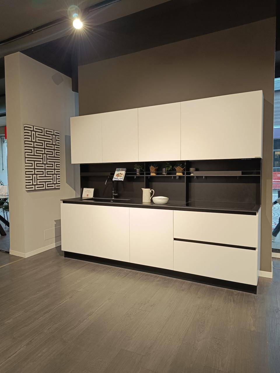 Cucina modello Ego Line composta da colonne L. 186 cm e basi L. 270 cm, H. 216 cm.