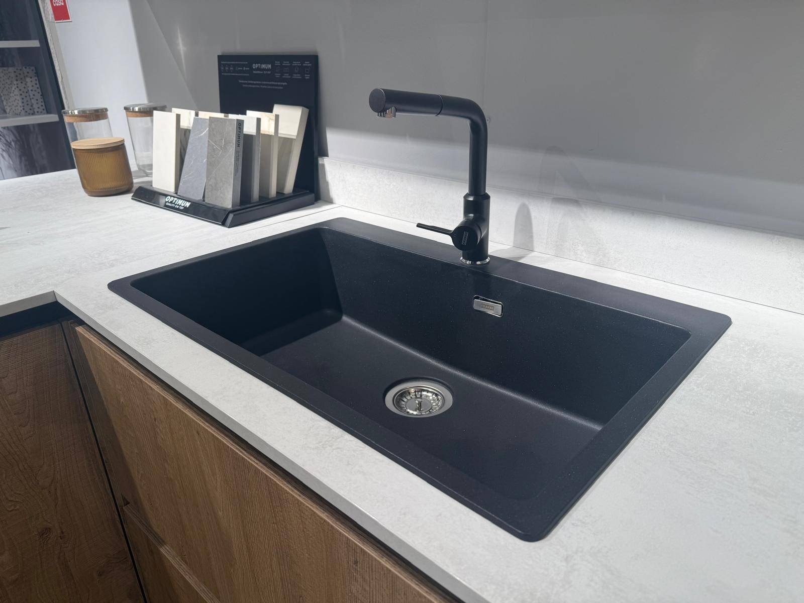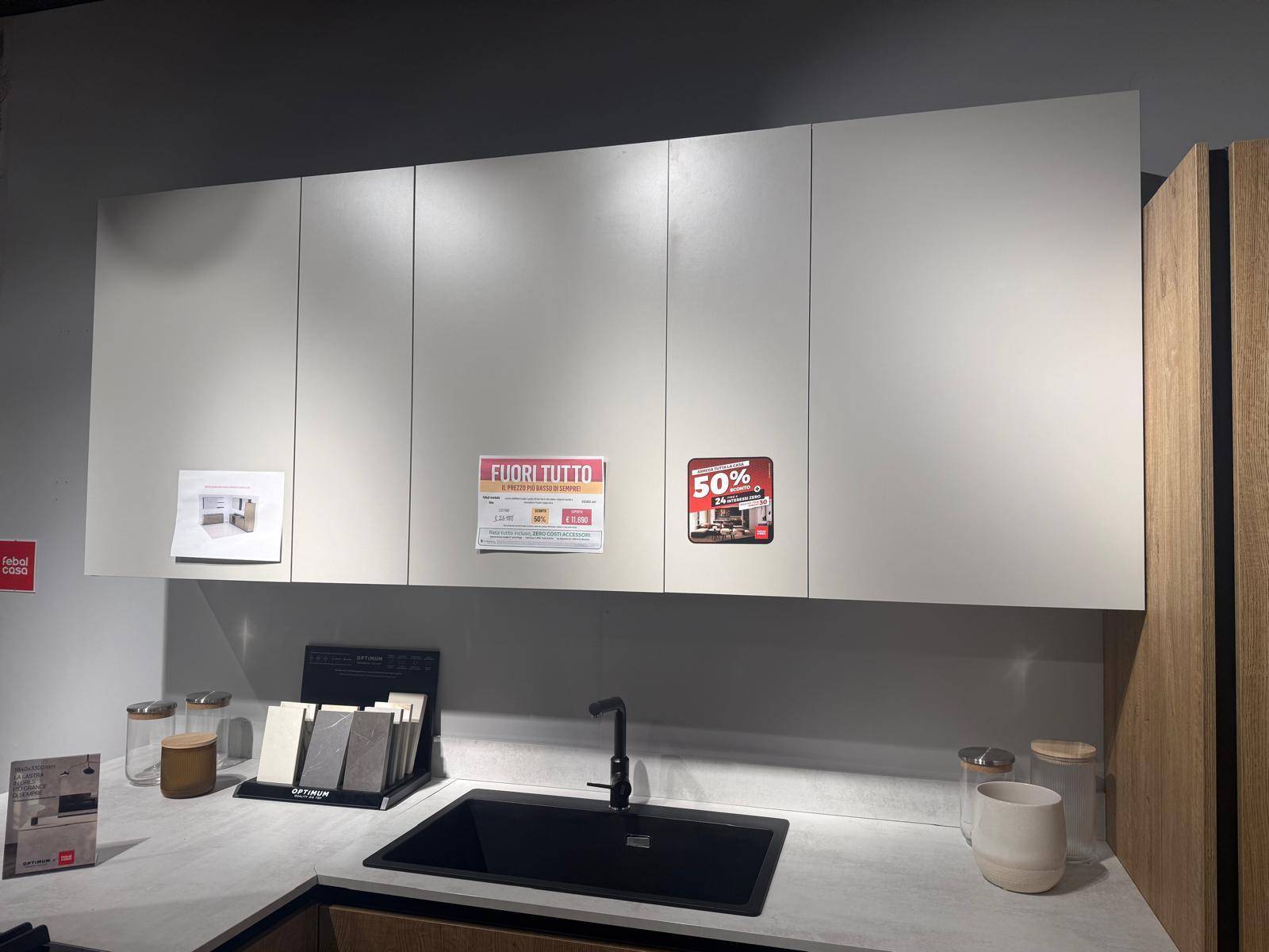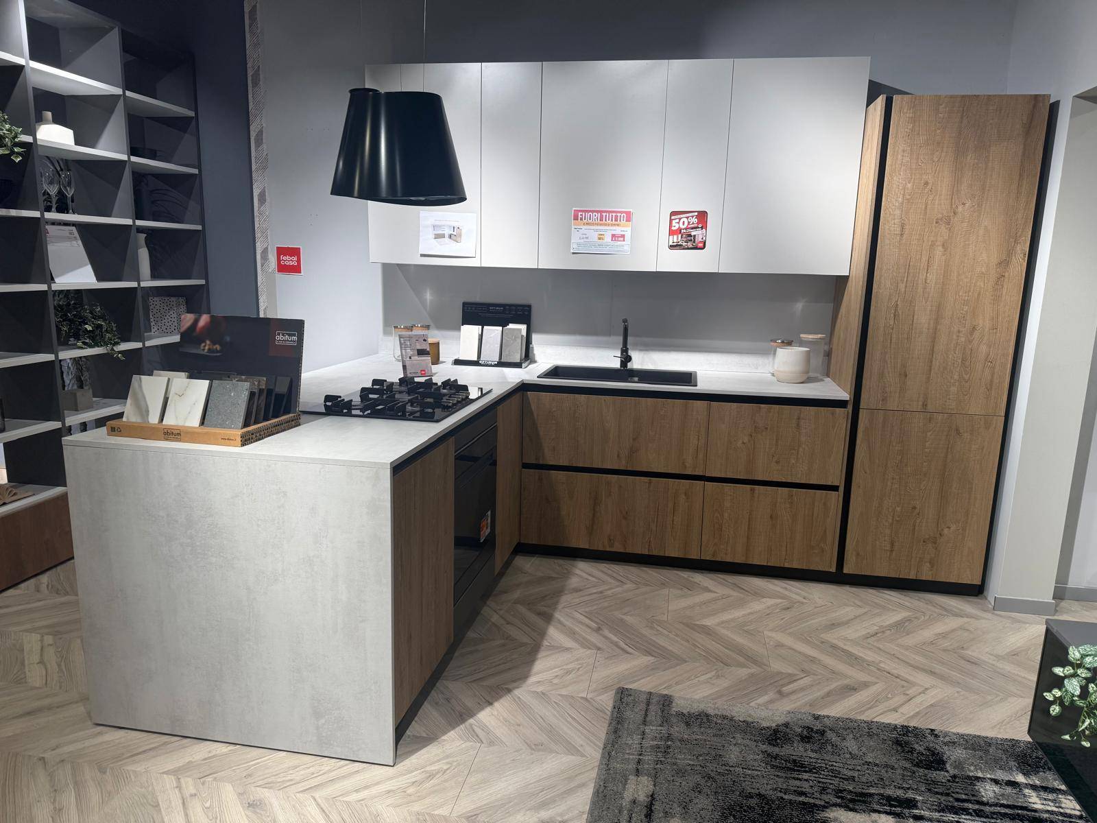 Cucina completa avente struttura in Grigio Acciaio per le basi e in Grigio Texture per i pensili.