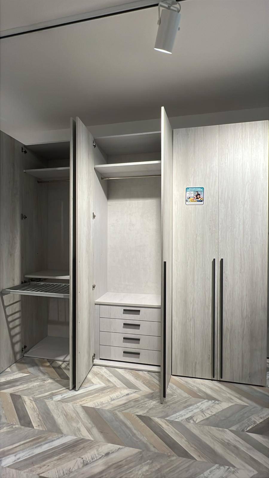 Armadio Volo a 6 ante battenti in Rovere Gesso, con maniglia Blade 1195 verticale Grigio Titanio, completo di: