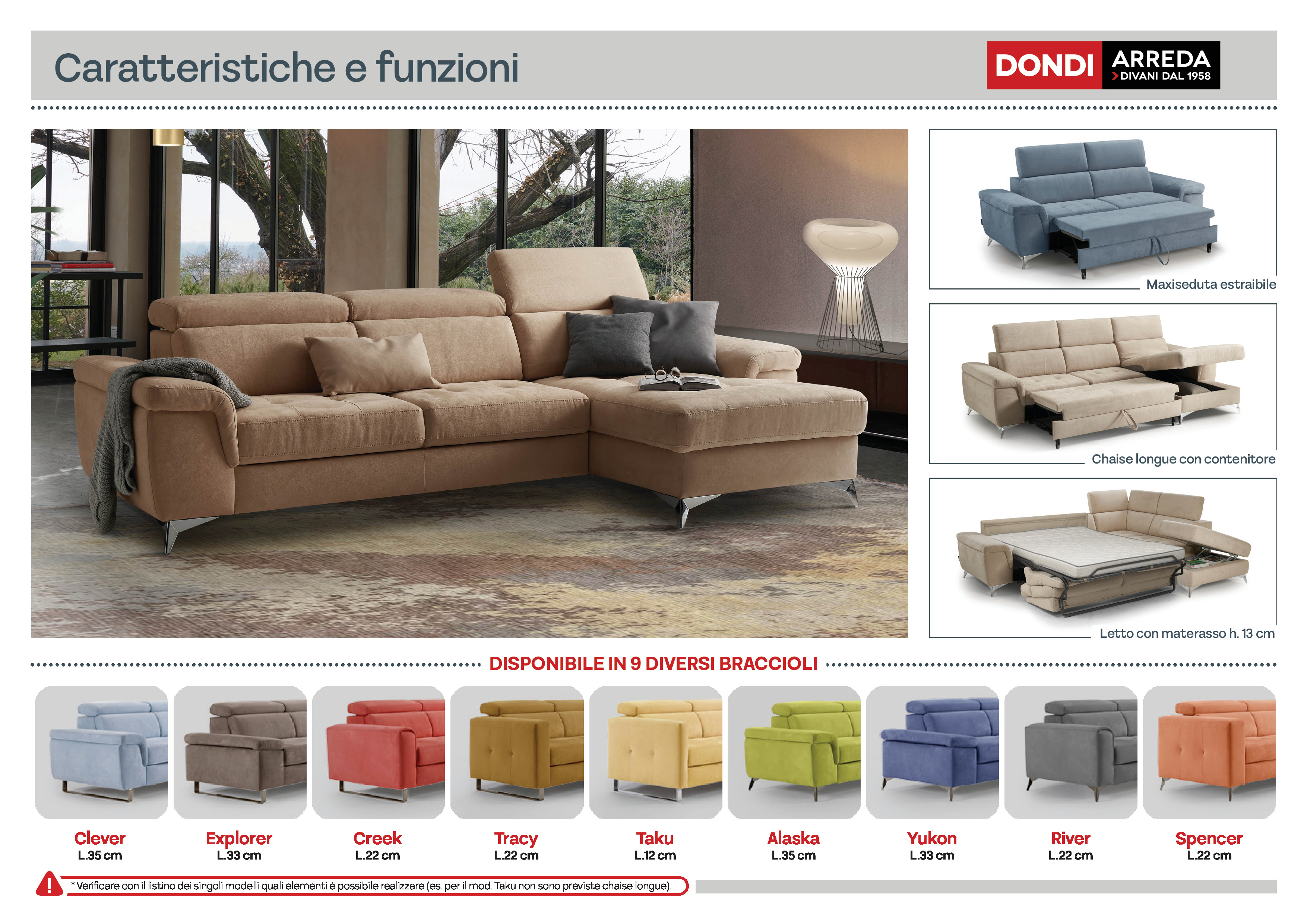 Divano con terminale 2 posti con carrello e chaise longue contenitore, in tessuto antimacchia fastclean