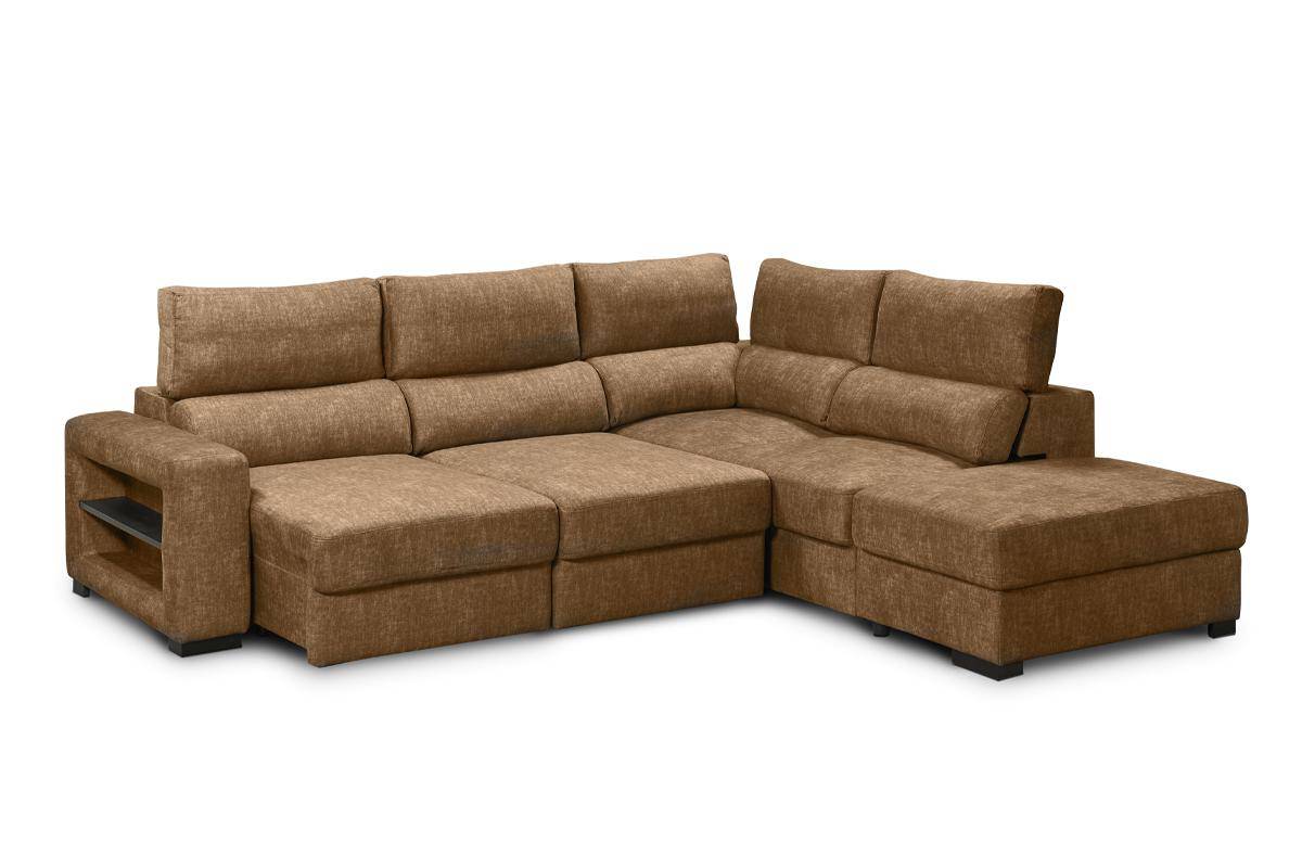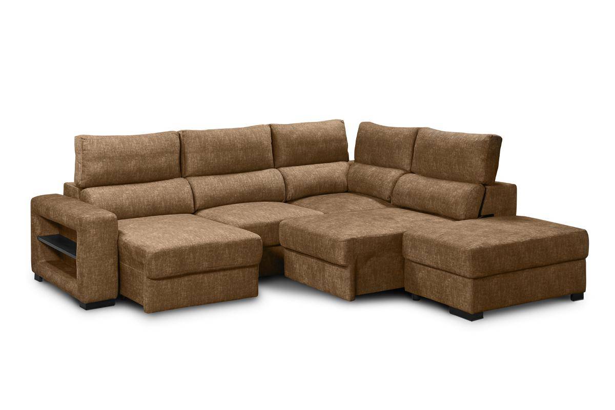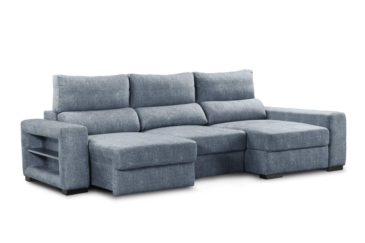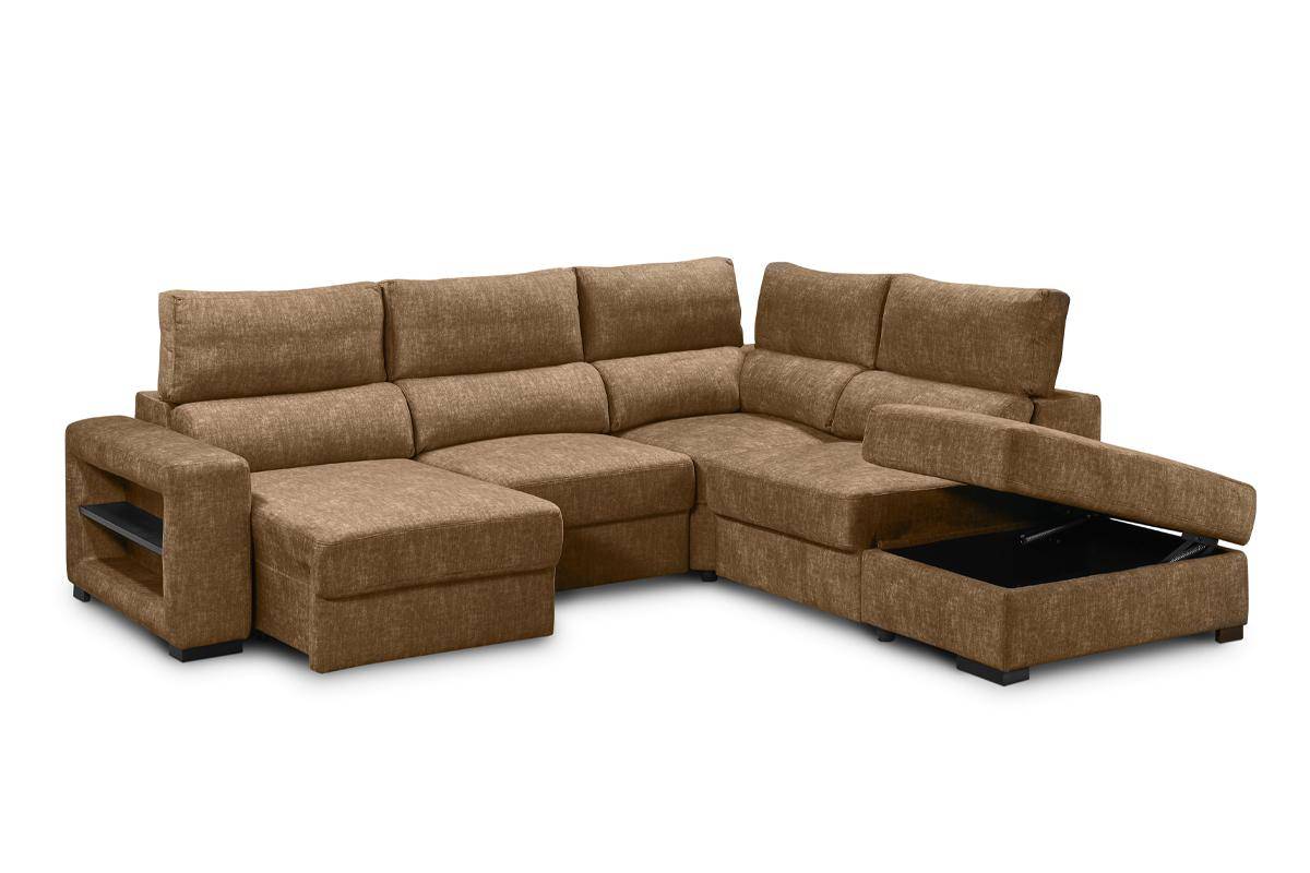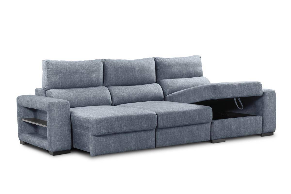 Angolare con 3 slitte manuali e pouf terminale contenitore, in tessuto antimacchia.