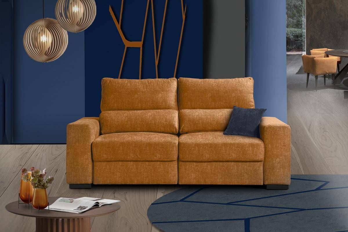 Divano 3 posti con 2 slitte manuali, in tessuto antimacchia.