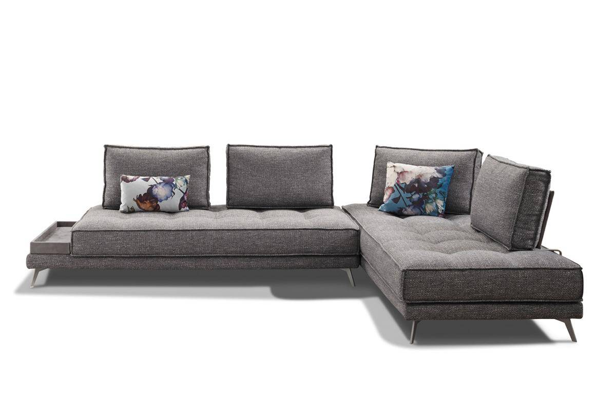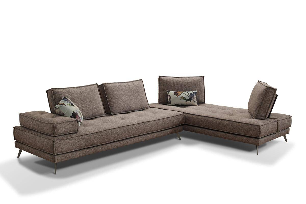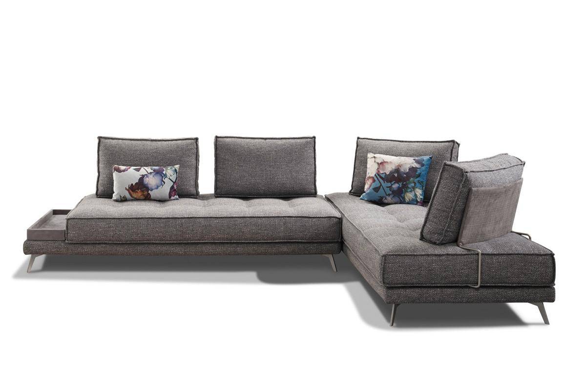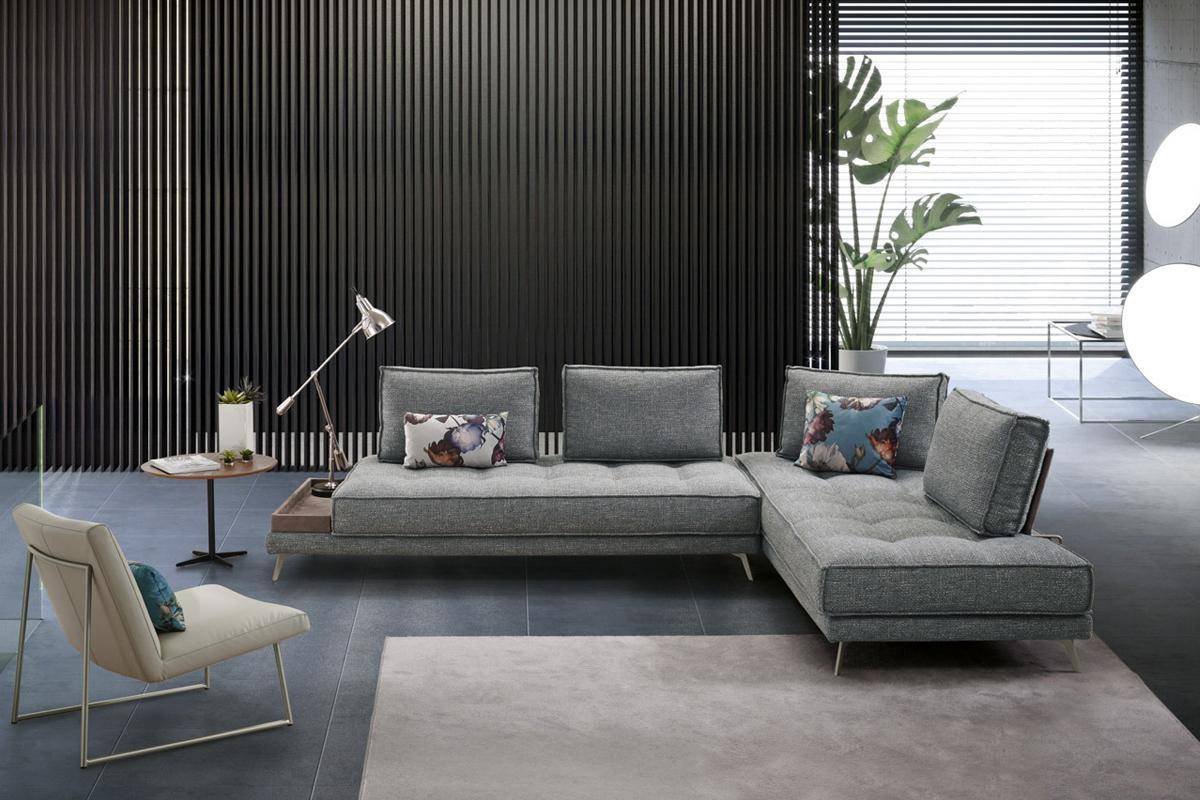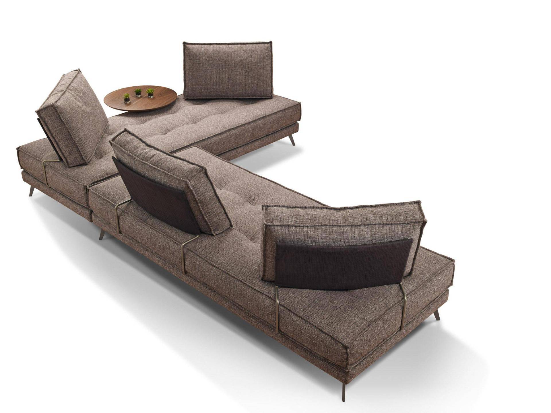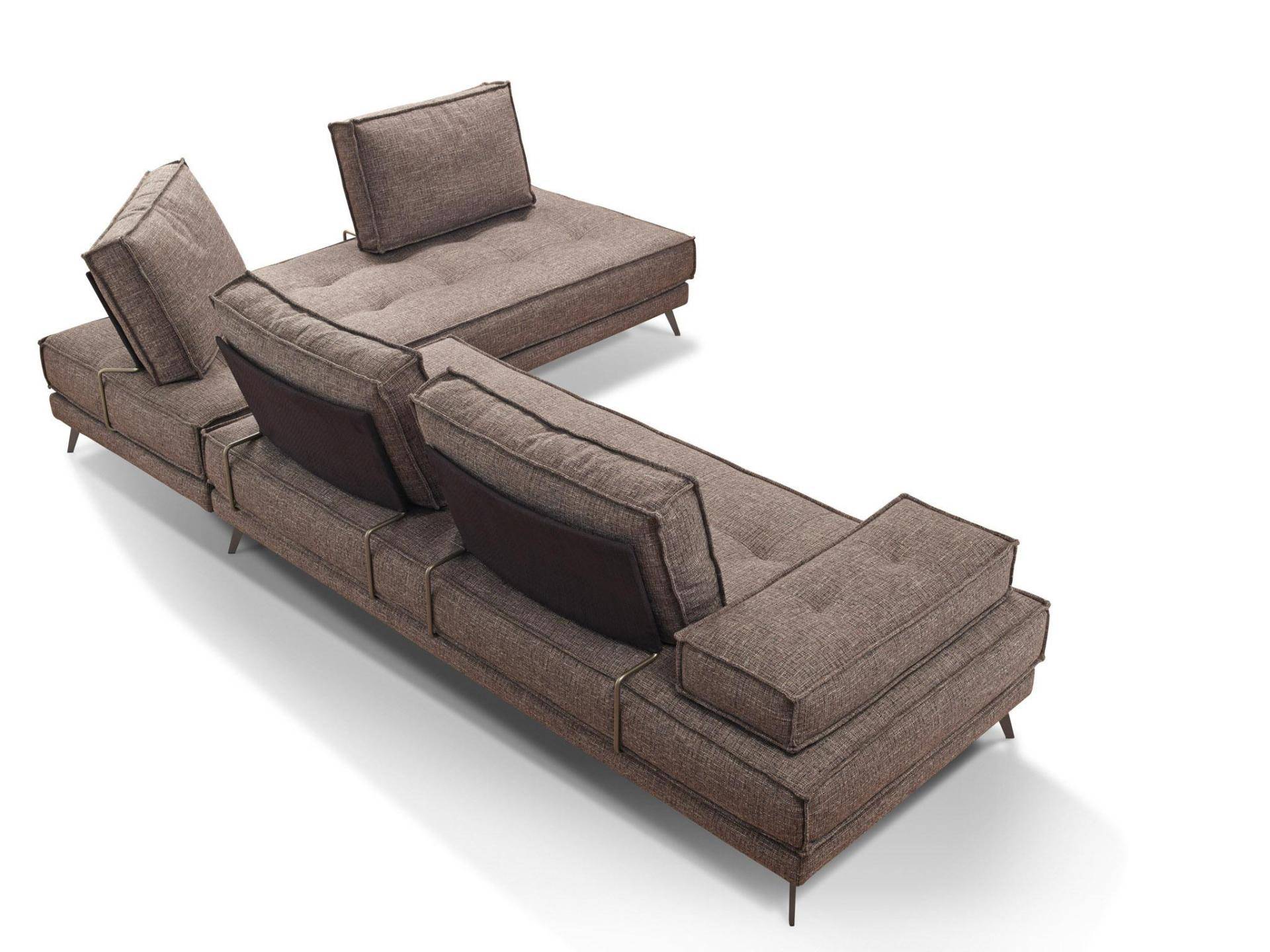Composizione modulare con terminale 3 posti con schienali movibili e chaise longue, in tessuto antimacchia.
