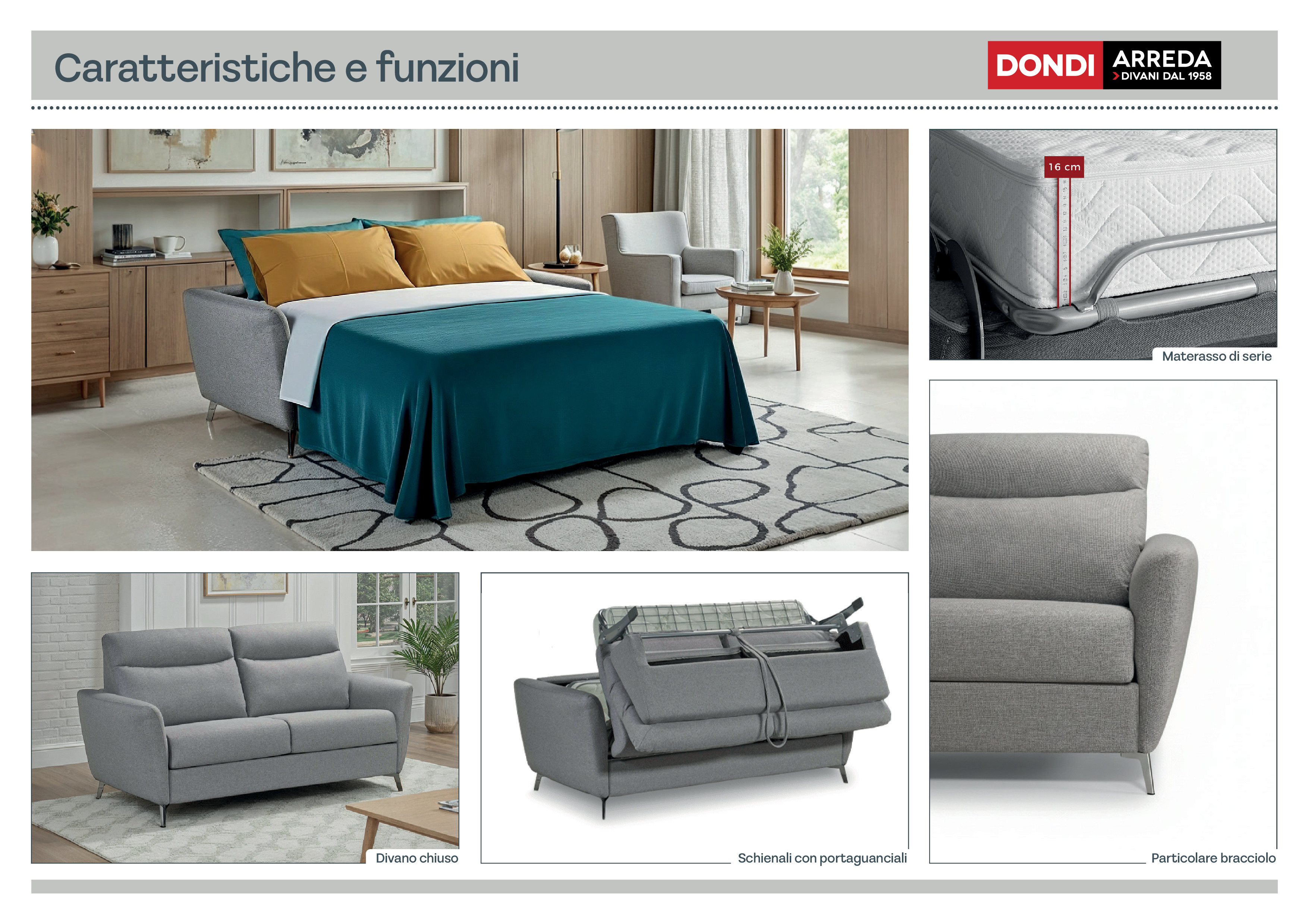 Divano 3 posti con letto (materasso con aloe 140x190x16 cm), in tessuto fastclean.