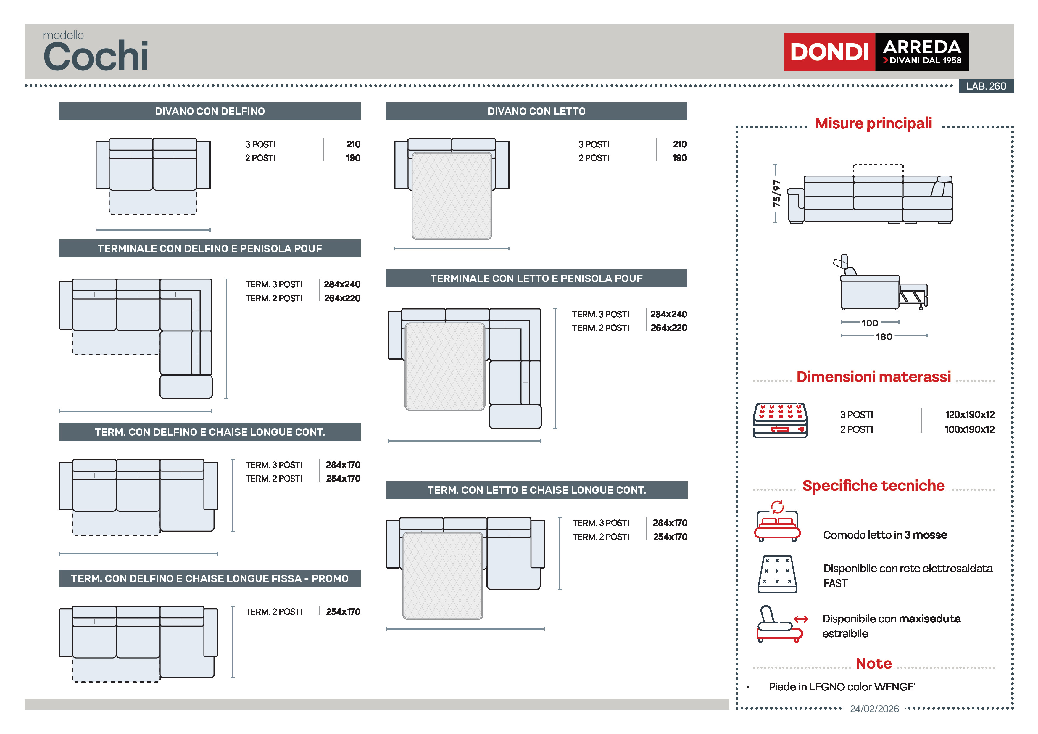Dimensioni: L. 216 x P. 106 x H. 75 cm