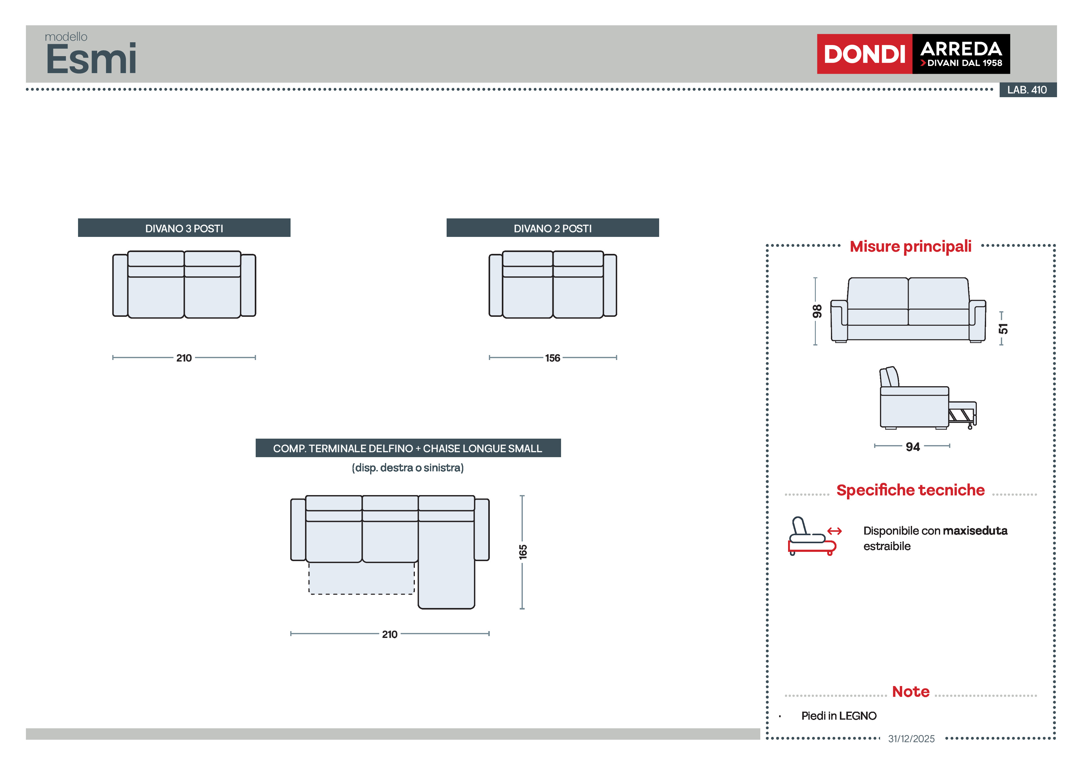 Dimensioni: L. 210 x P. 165 x H. 98 cm