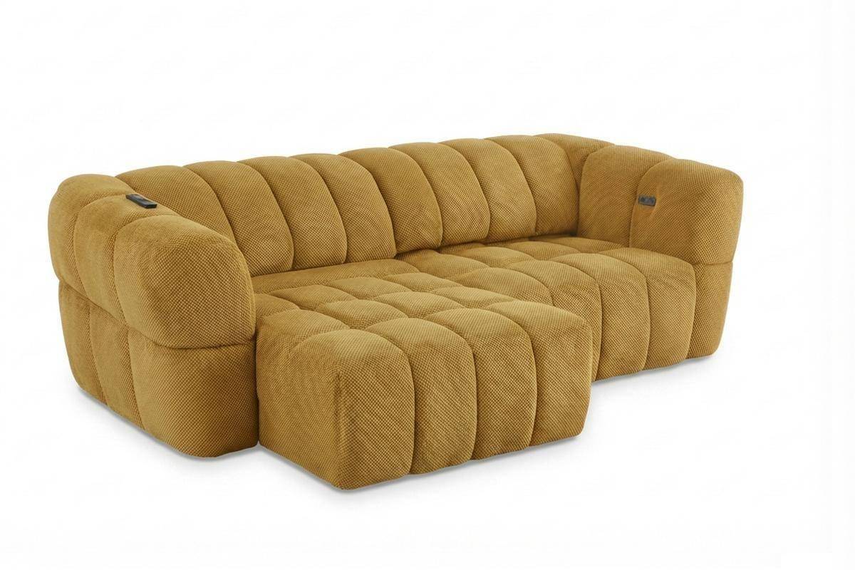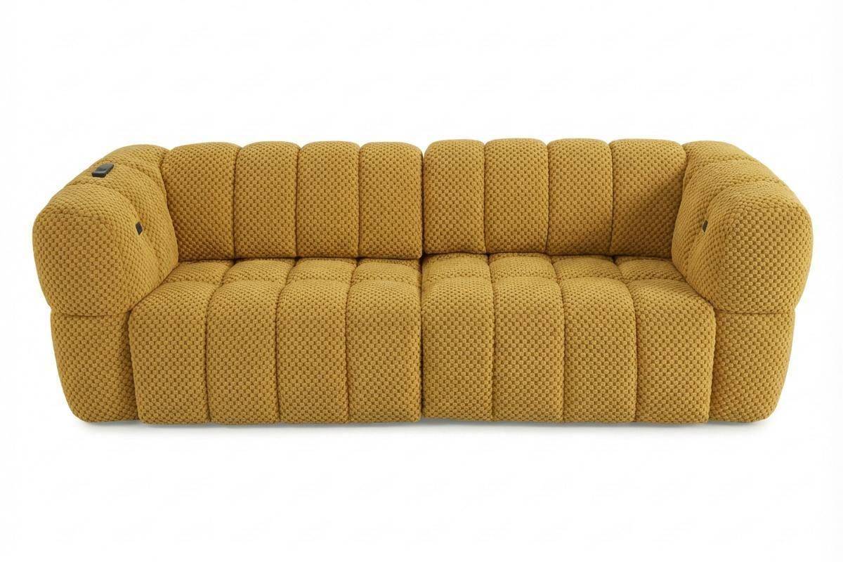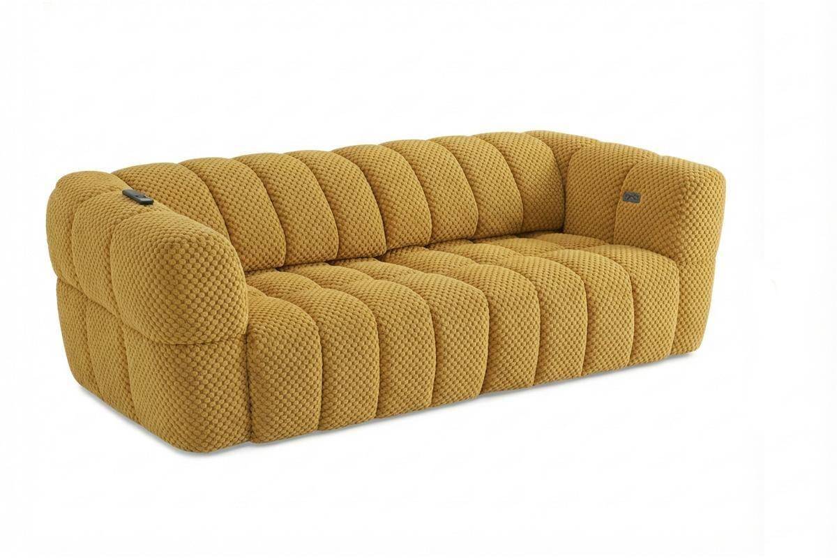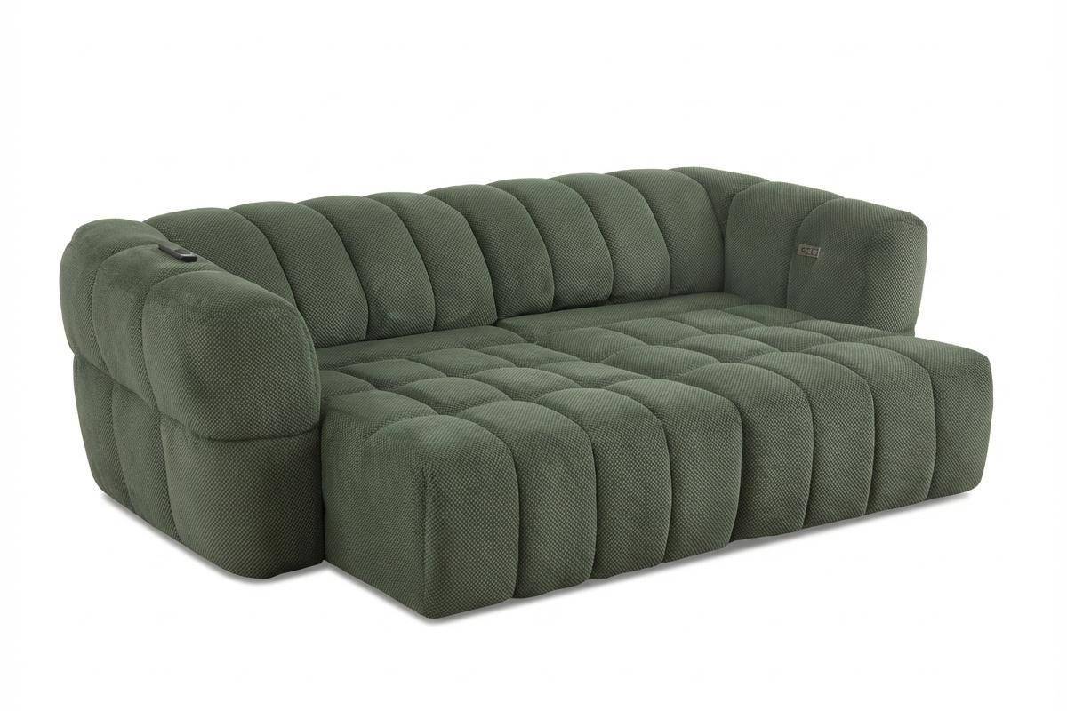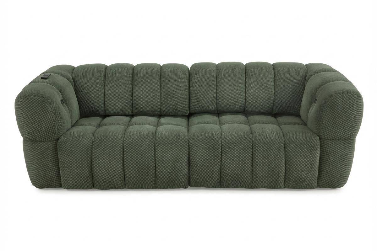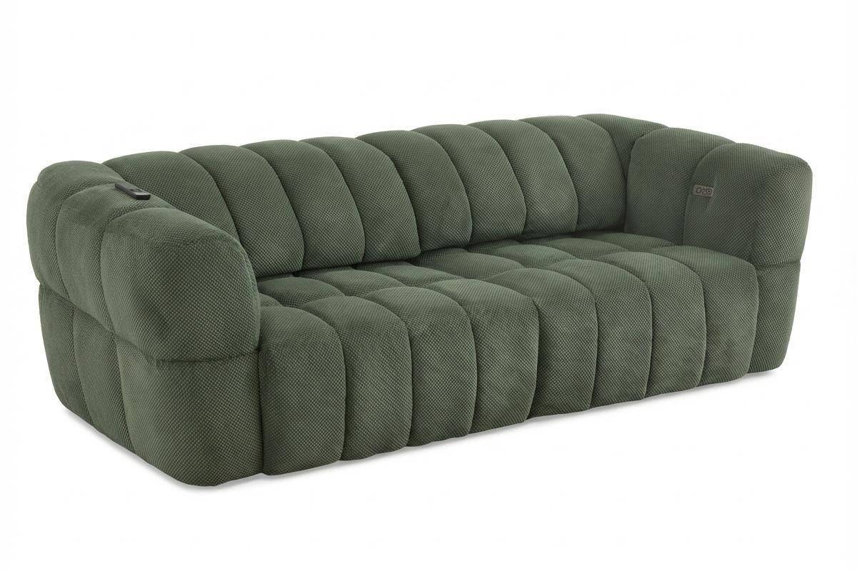 Divano 3 posti con 2 sedute a slitta elettriche, in tessuto antimacchia (disponibile in 3 colori).