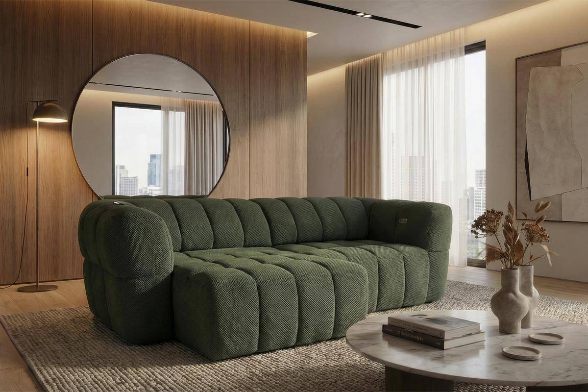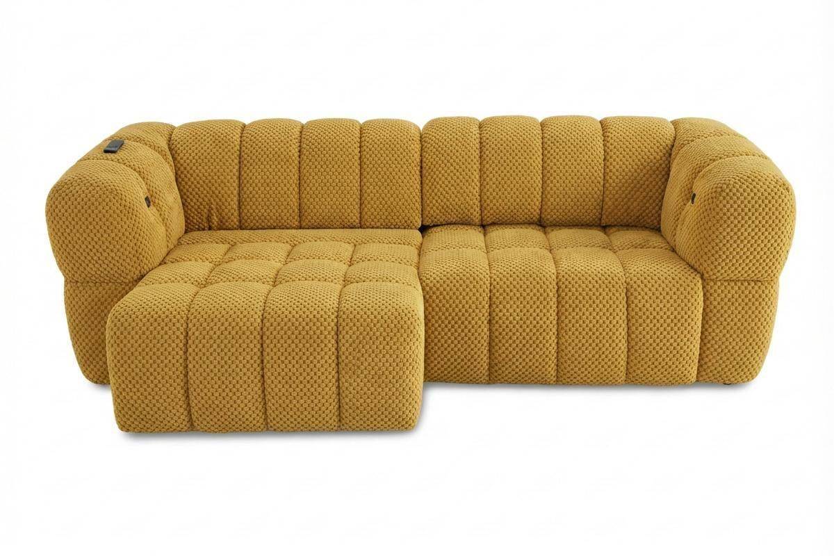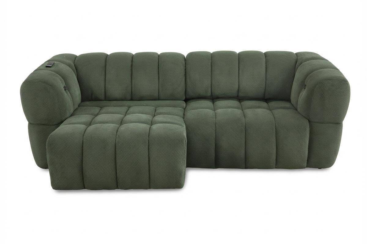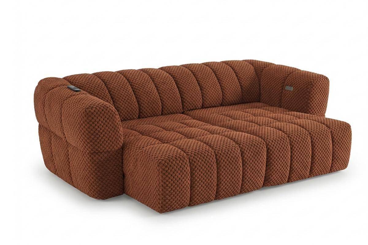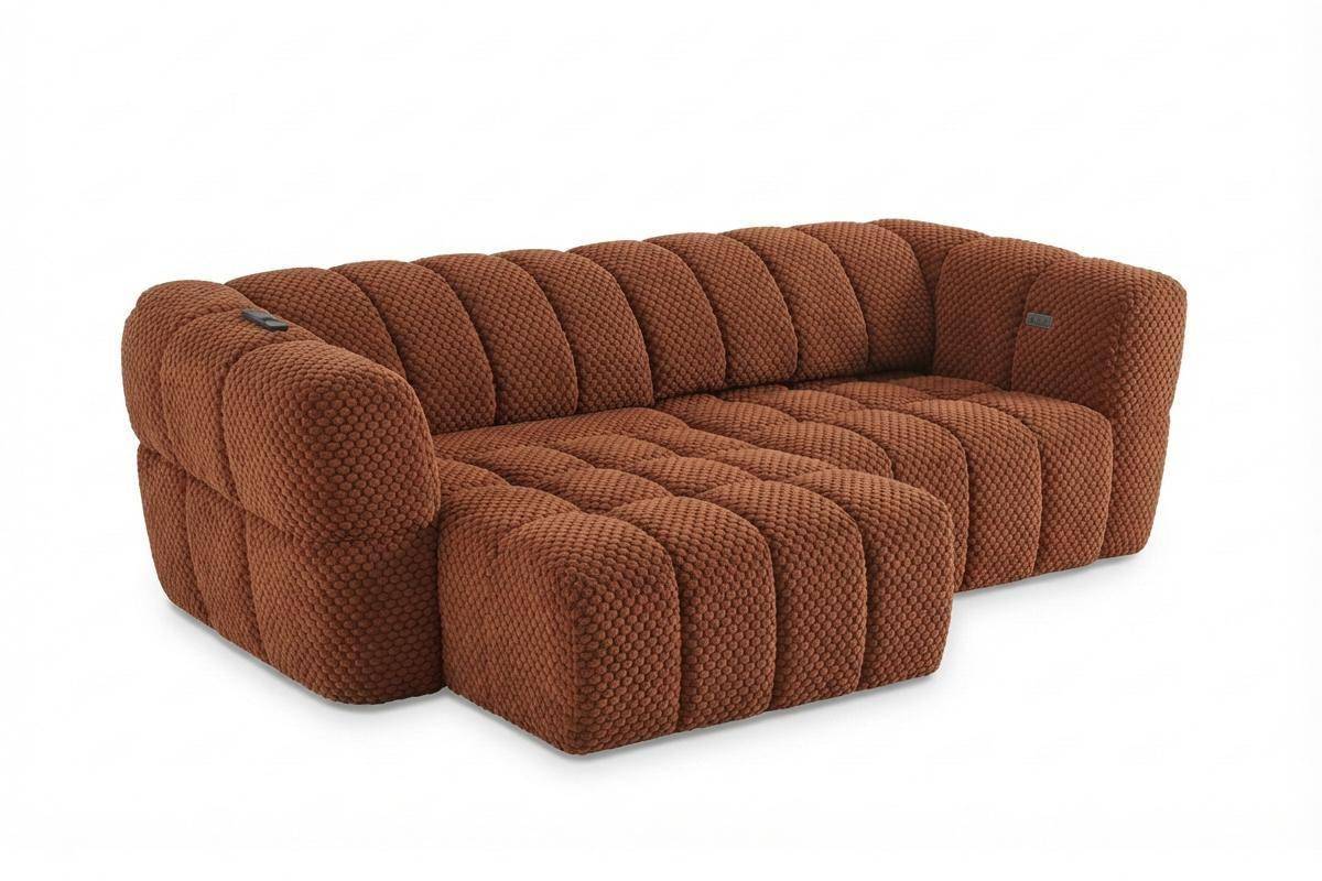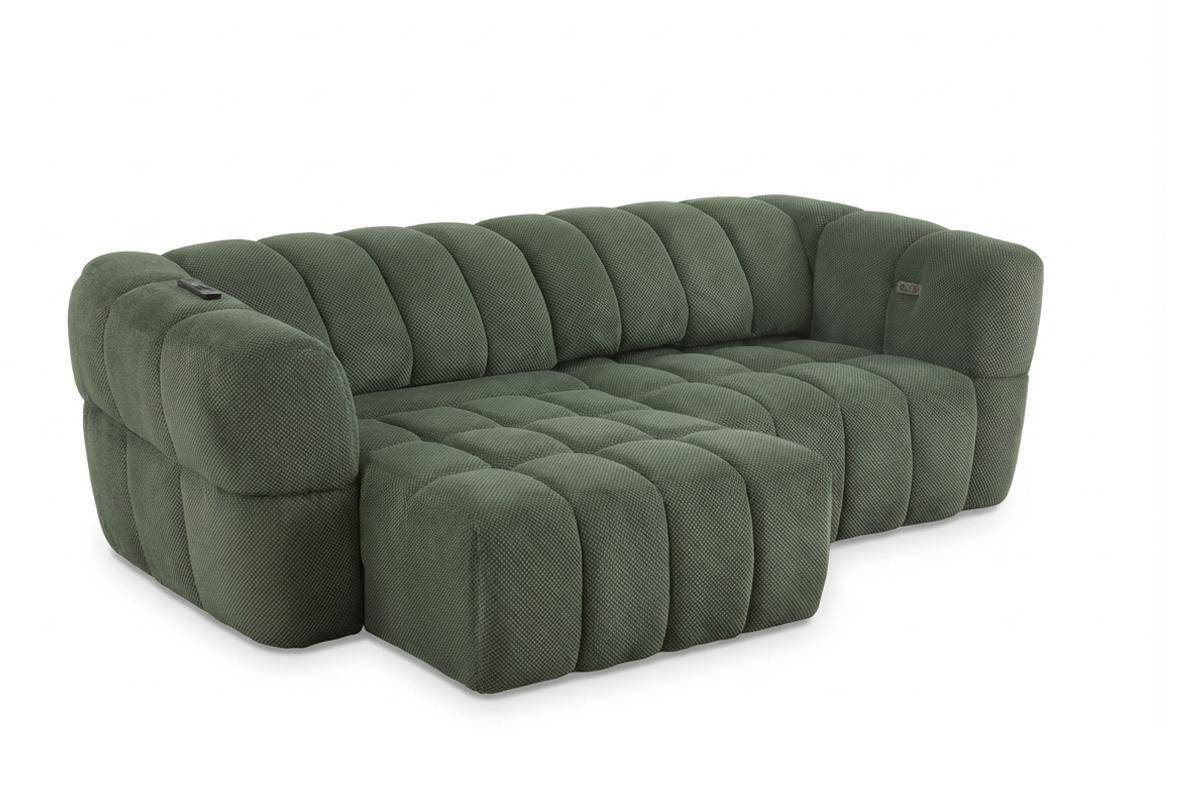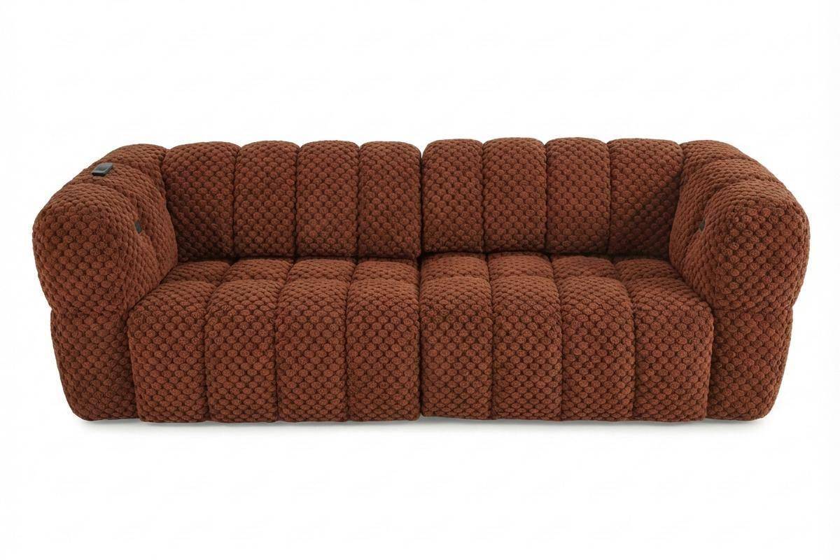 Divano 3 posti con 2 sedute a slitta elettriche, in tessuto antimacchia (disponibile in 3 colori).