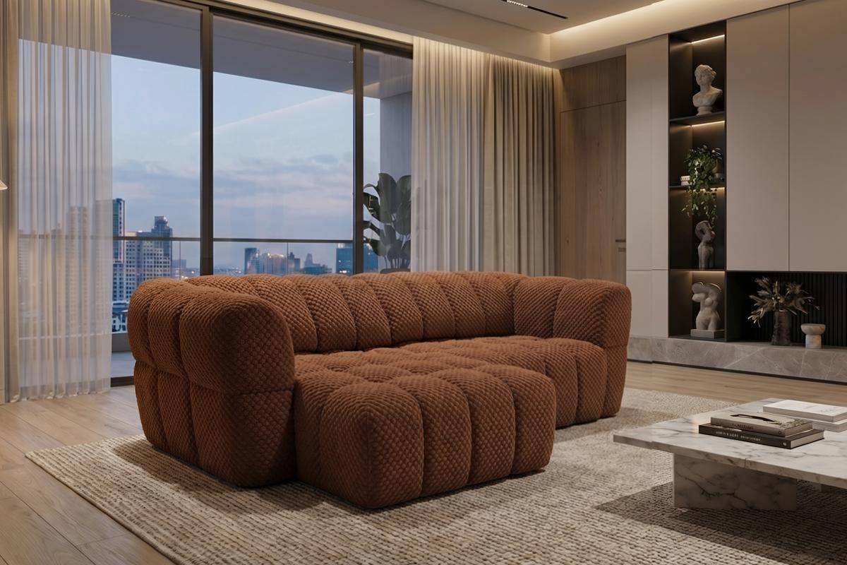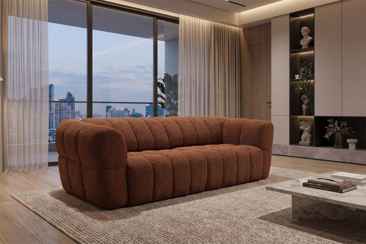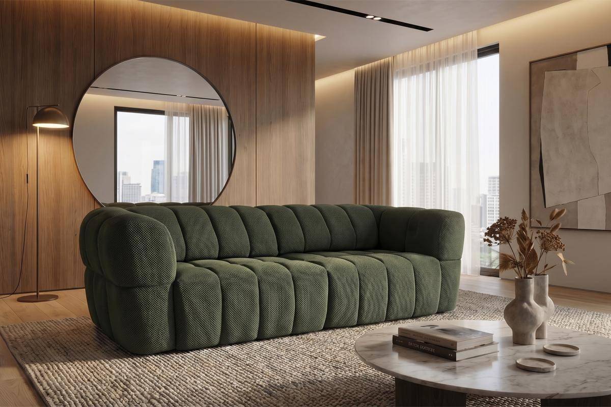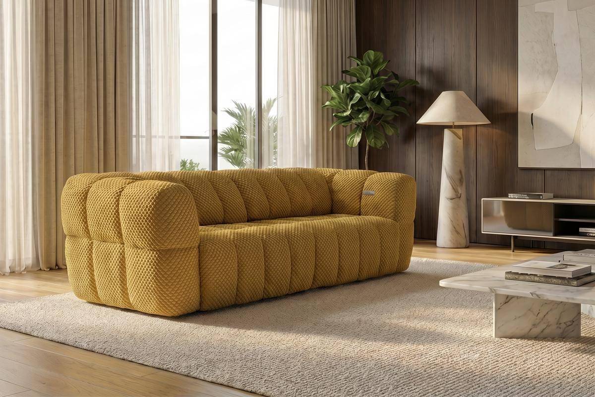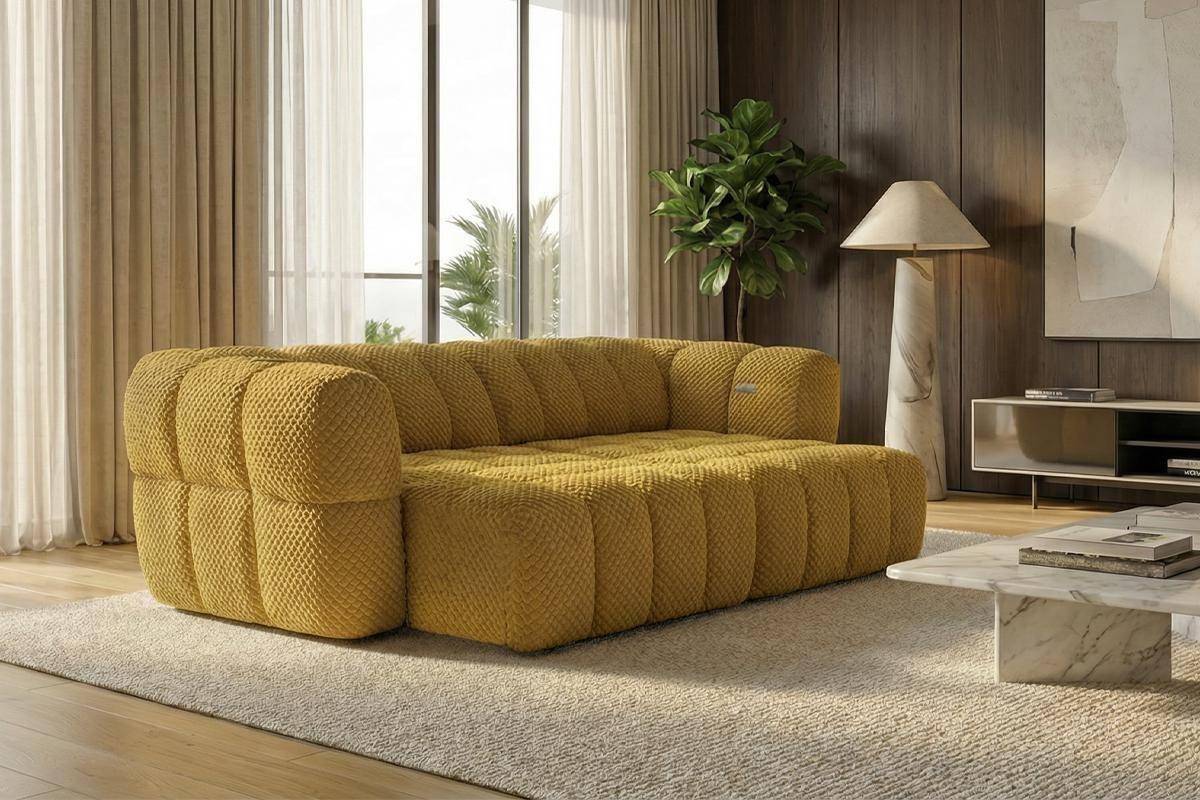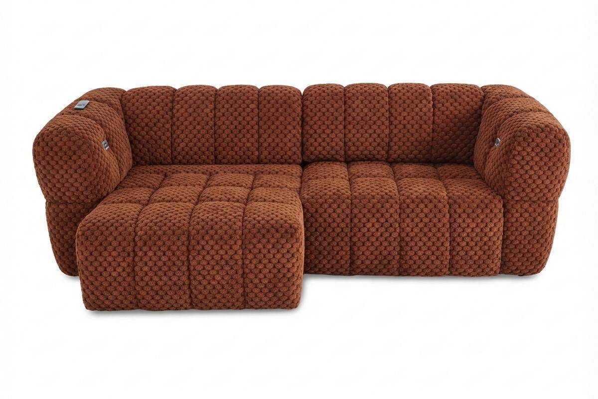 Divano 3 posti con 2 sedute a slitta elettriche, in tessuto antimacchia (disponibile in 3 colori).