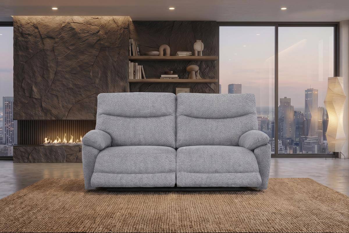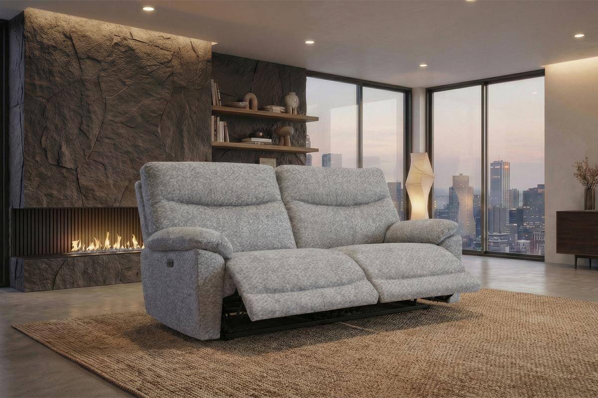Divano 3 posti con 2 sedute relax elettriche, in tessuto antimacchia.