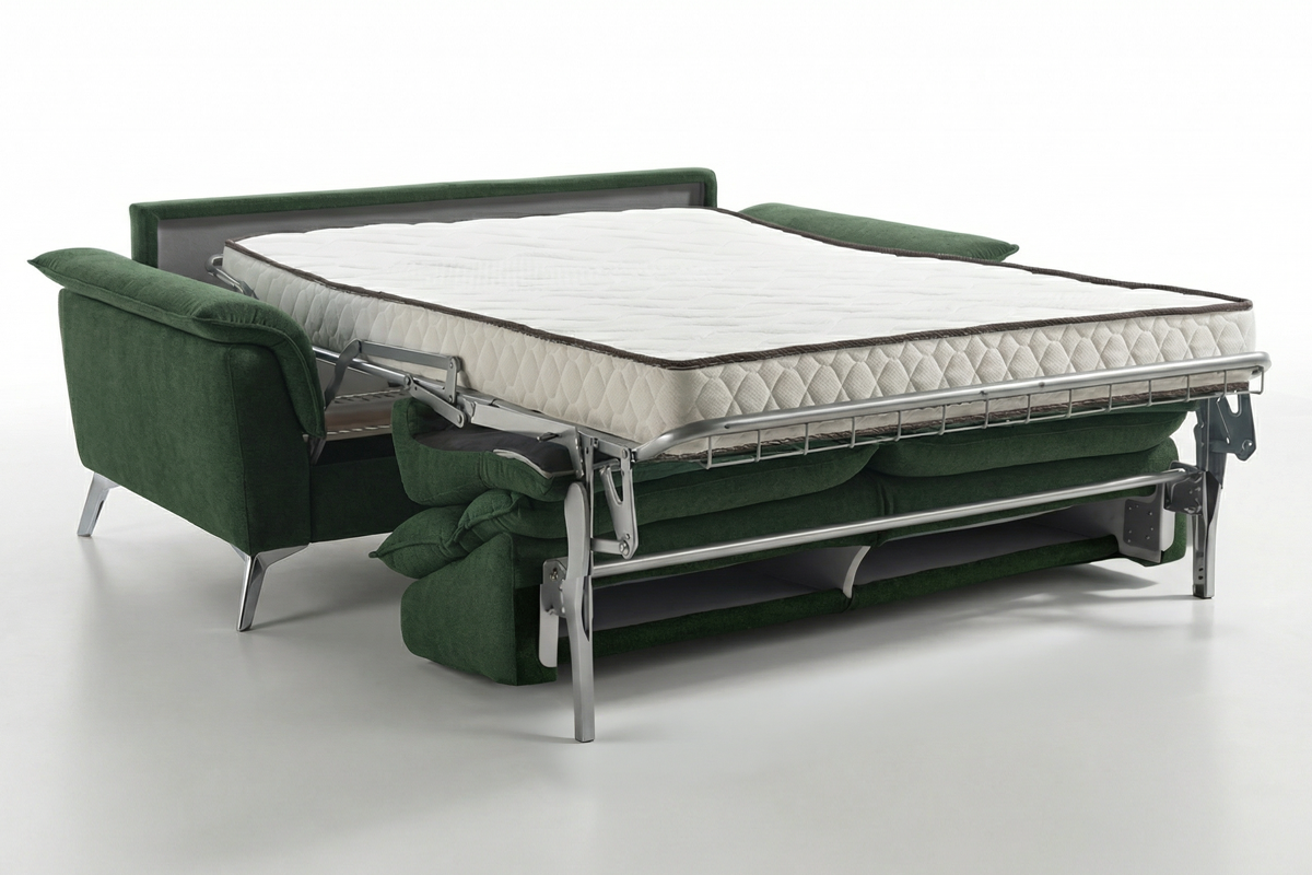 Divano 3 posti con letto (materasso con aloe 140x190x16 cm), in tessuto antimacchia.