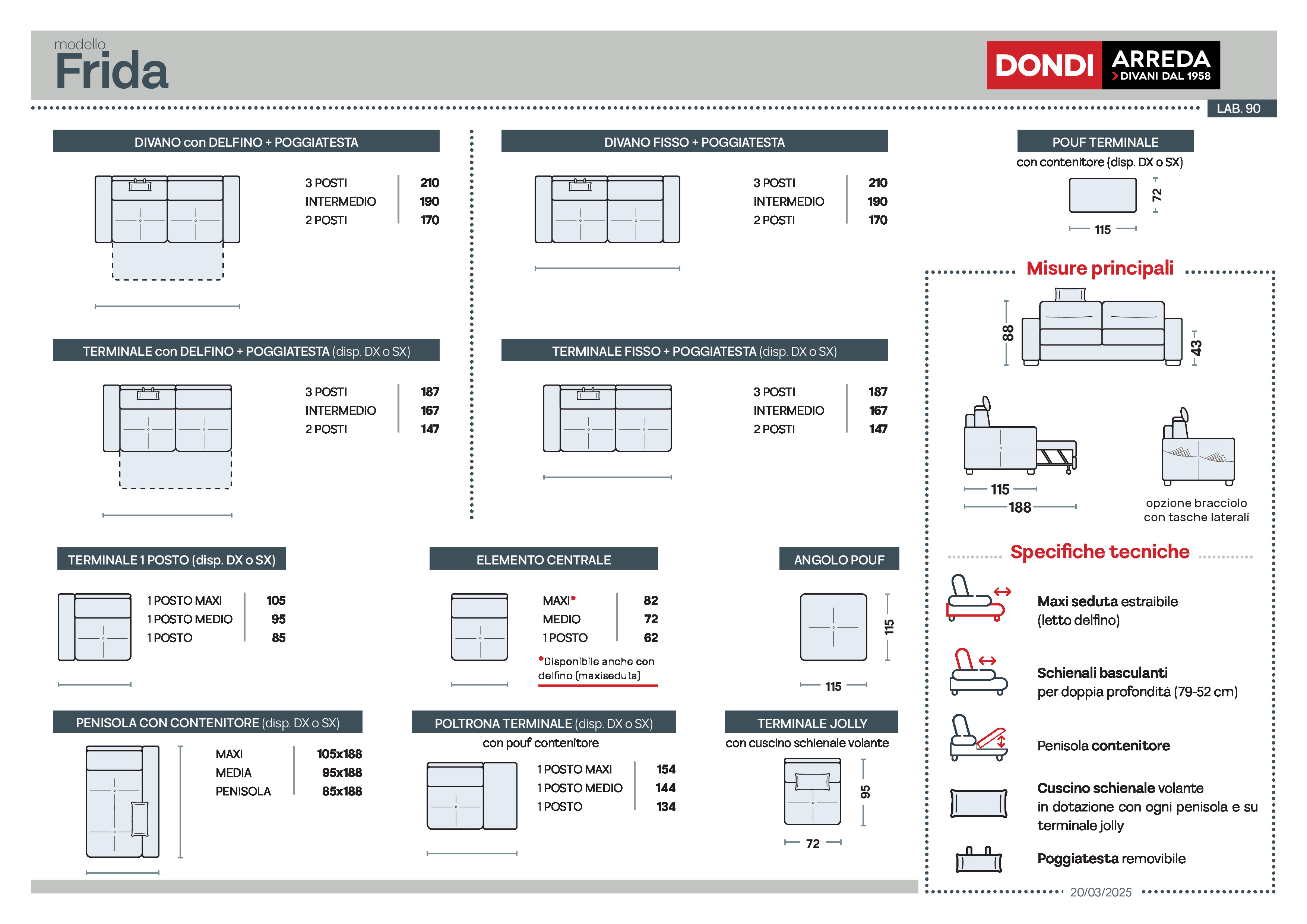 Dimensioni: L. 262 x P. 188 x H. 88 cm