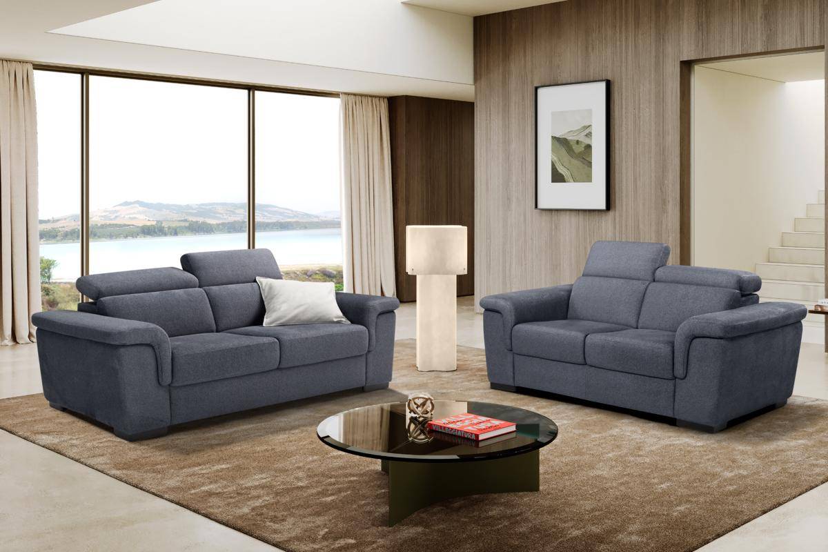 Divano 2 posti fisso, in tessuto antimacchia.