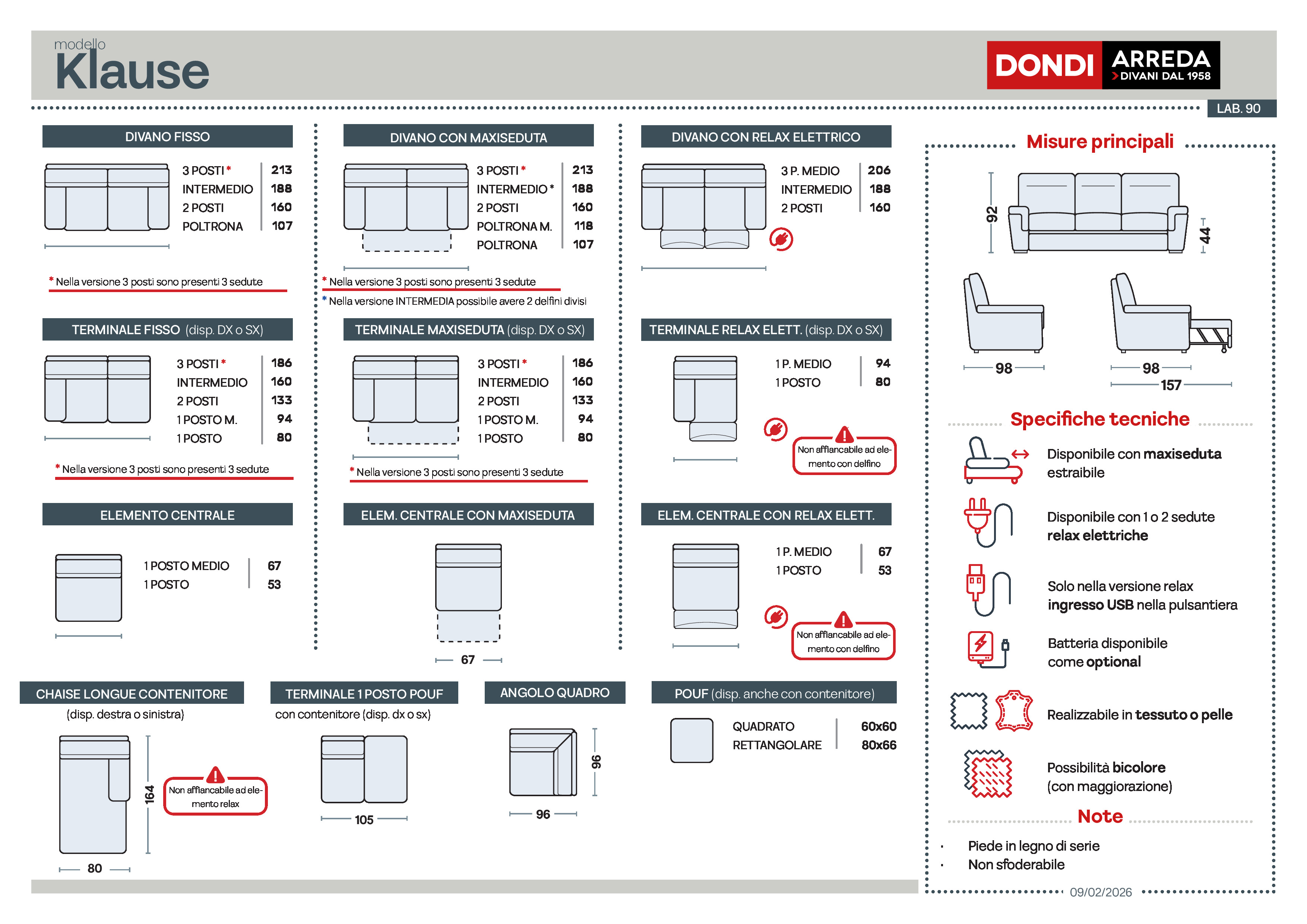 Dimensioni: L. 213 x P. 164 x H. 92 cm