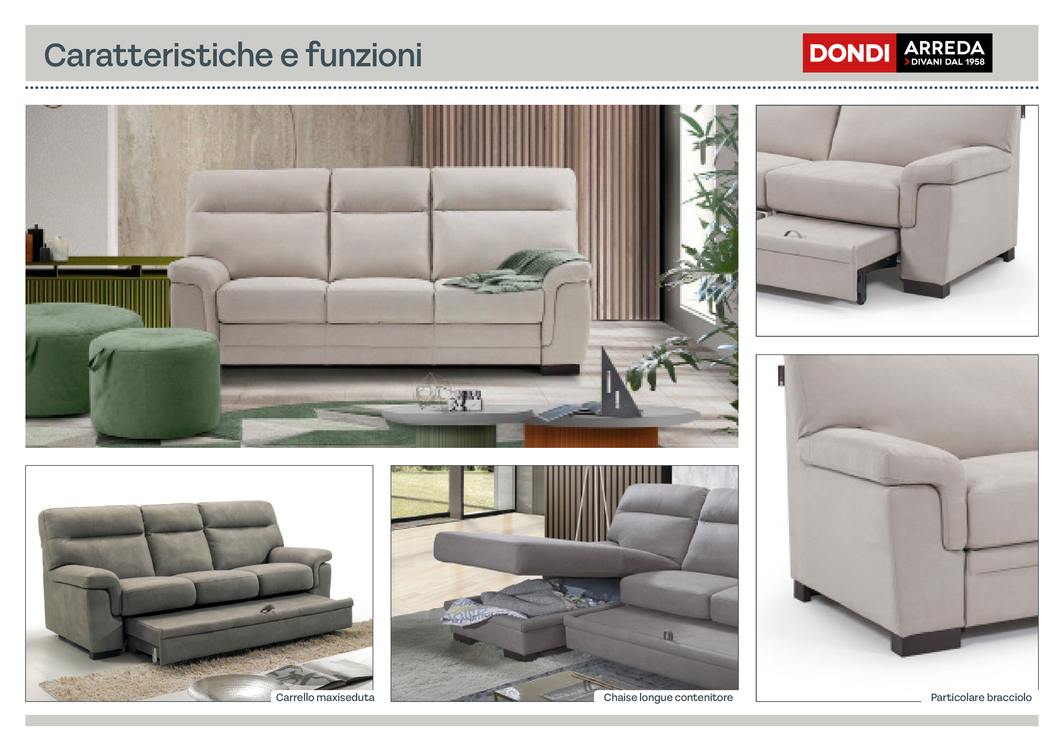Divano con terminale 2 posti con delfino (carrello) e chaise longue con contenitore, in microfibra.
