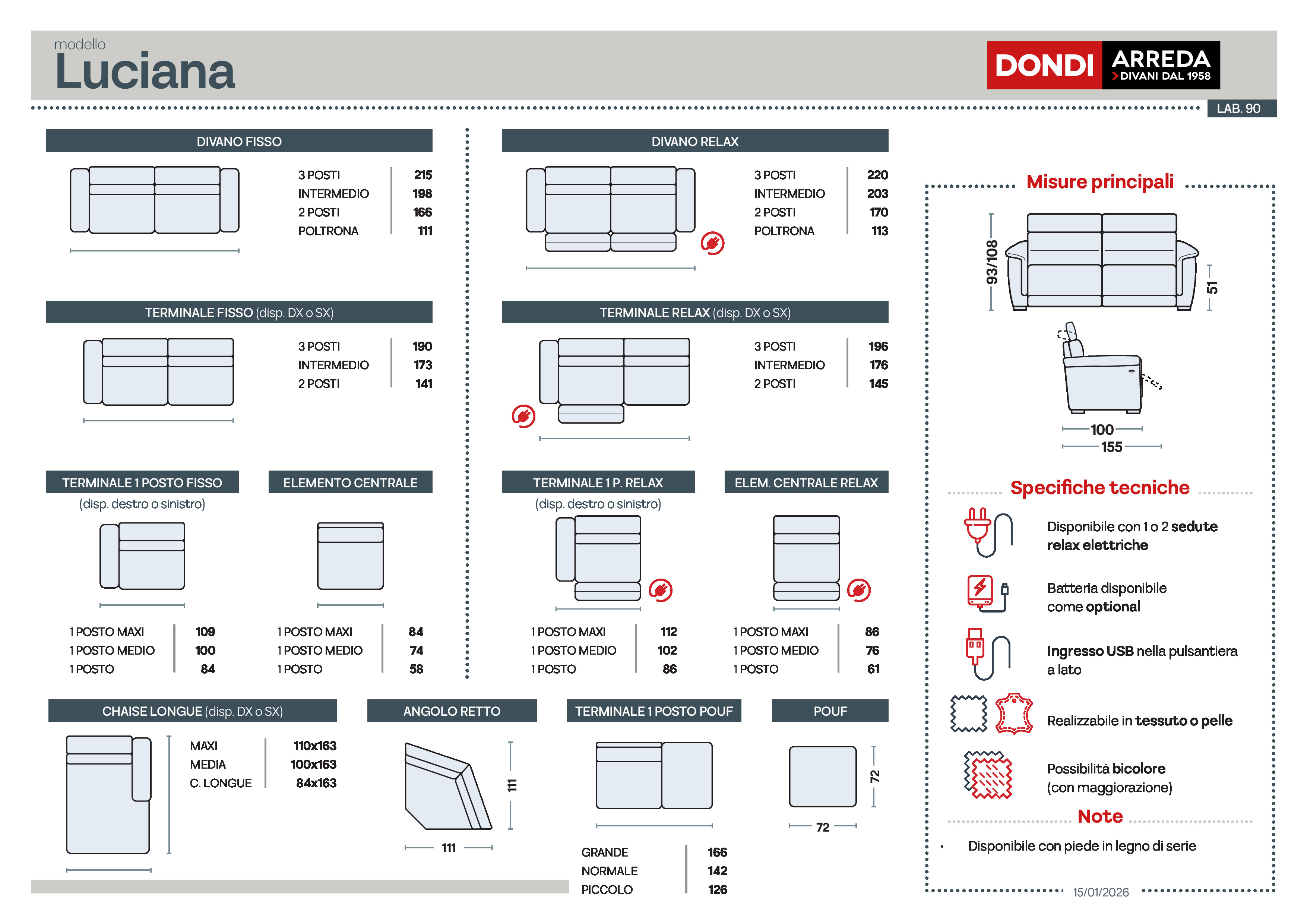 Dimensioni: L. 222 x P. 100 x H. 93 cm