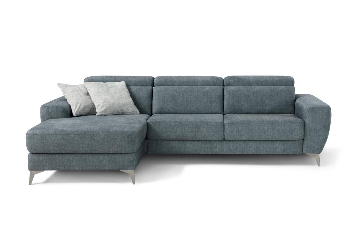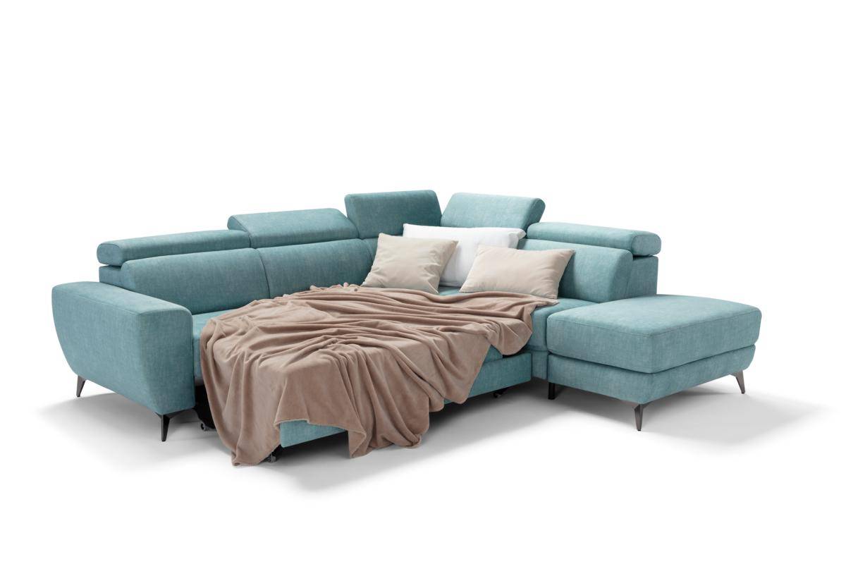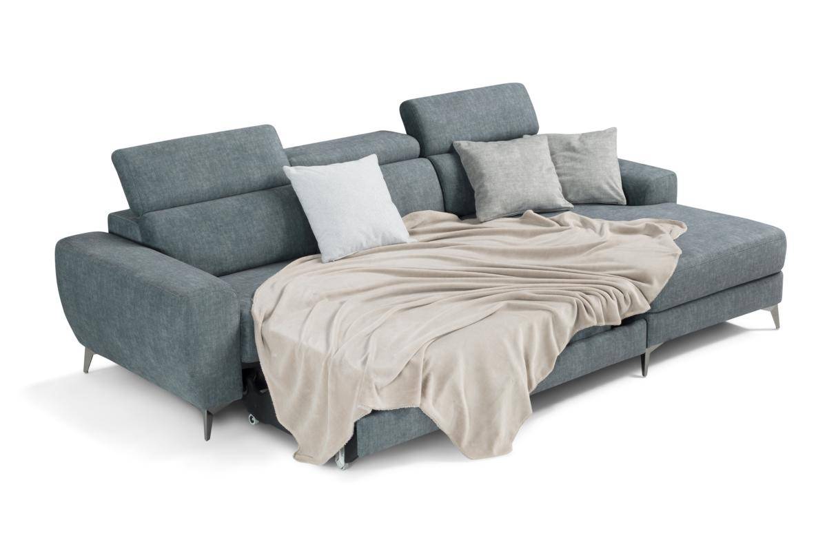 Divano con carrello estraibile e chaise longue fissa, in tessuto antimacchia.