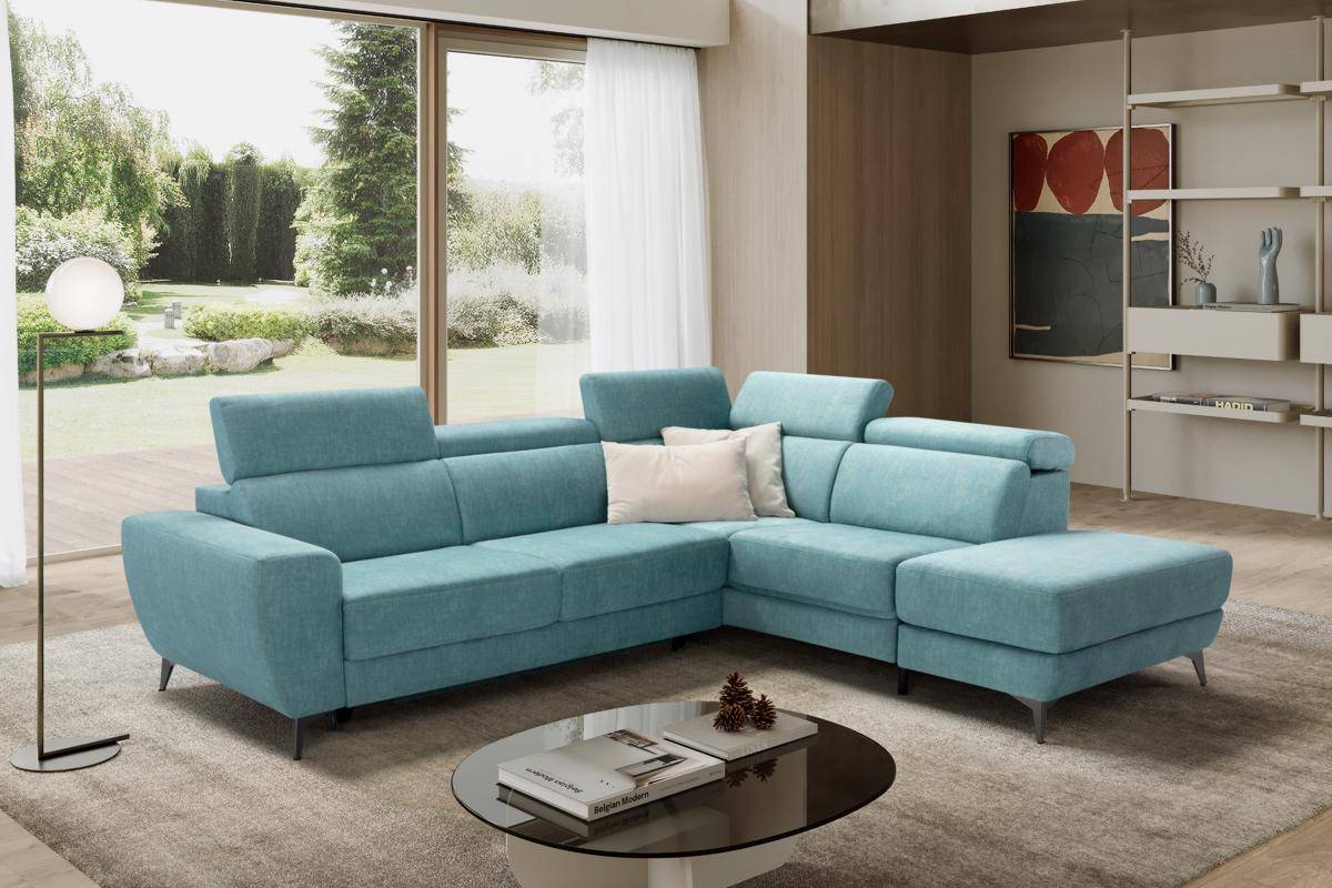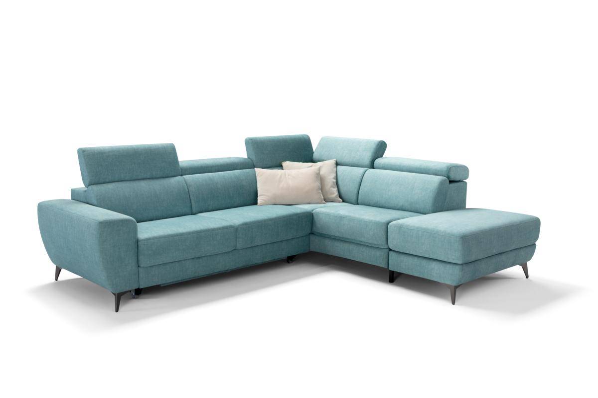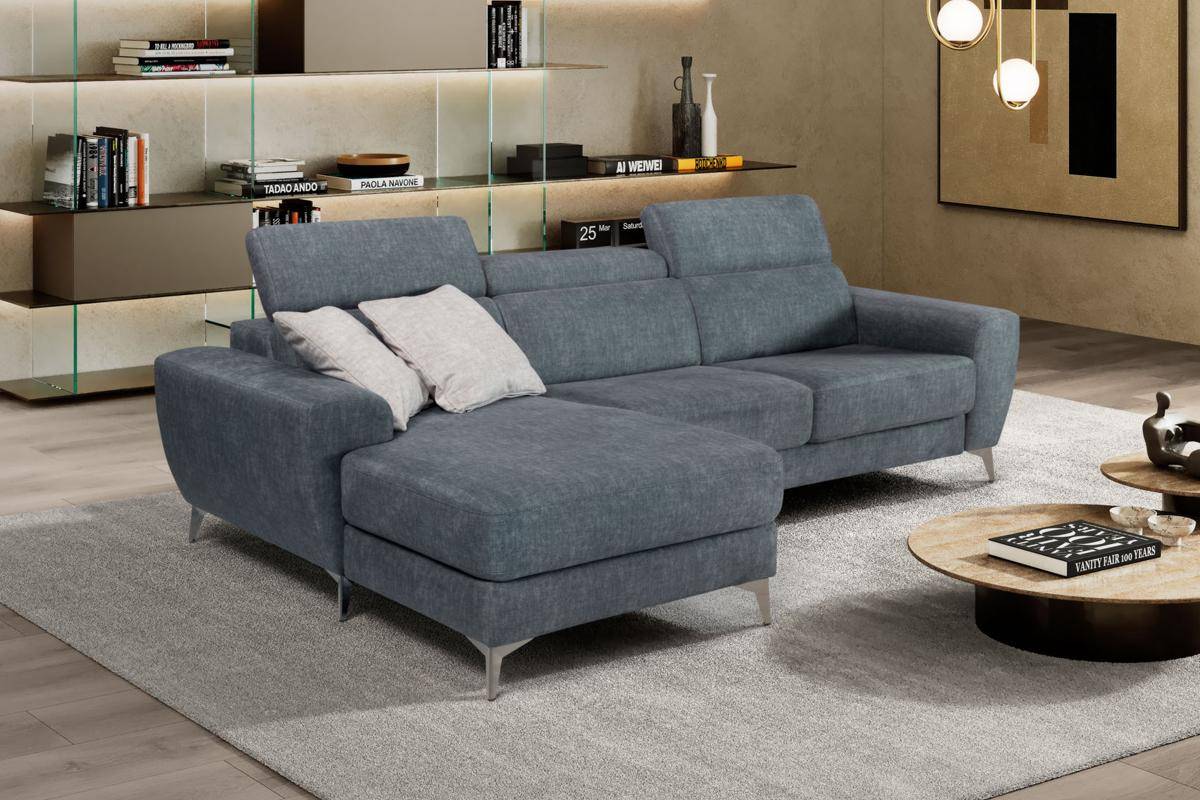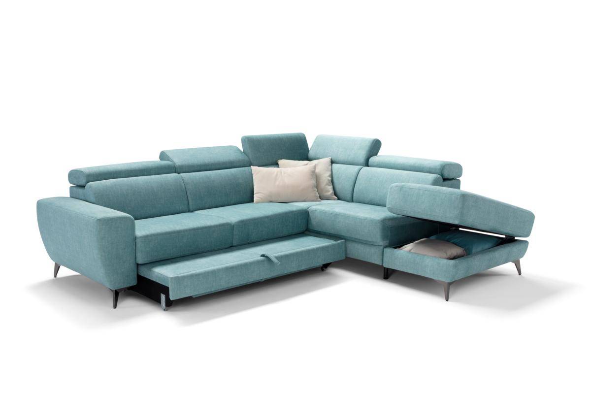 Divano con carrello estraibile e chaise longue fissa, in tessuto antimacchia.