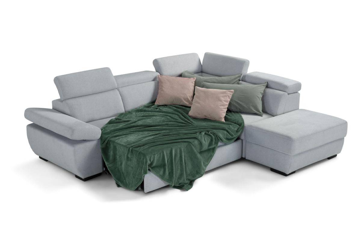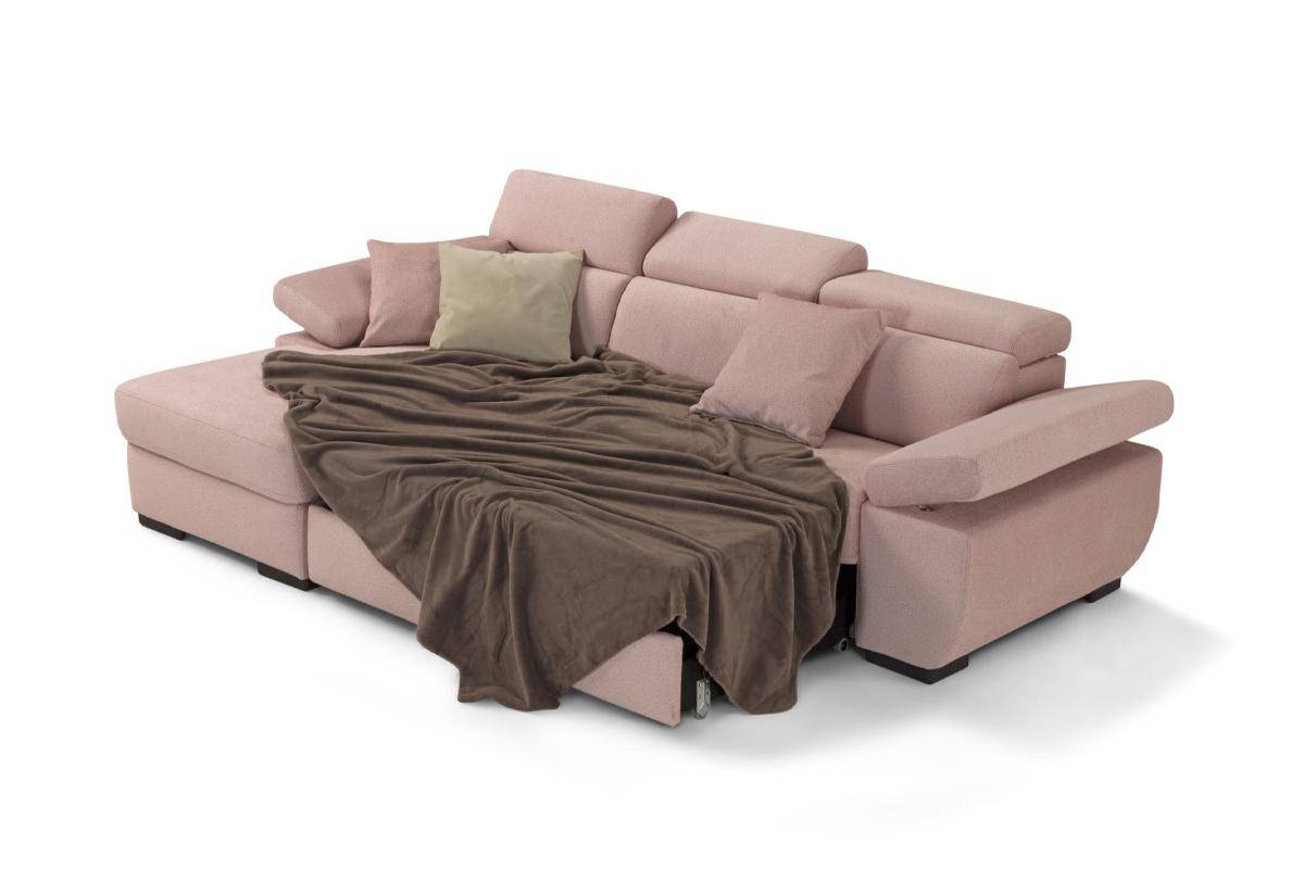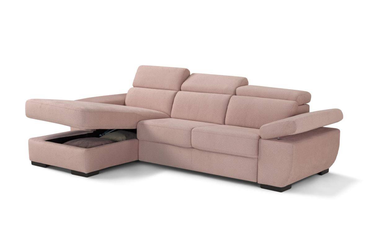 Divano con carrello estraibile e chaise longue, braccioli regolabili, in tessuto Penelope.
