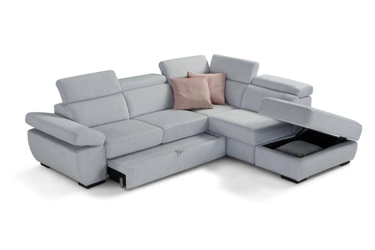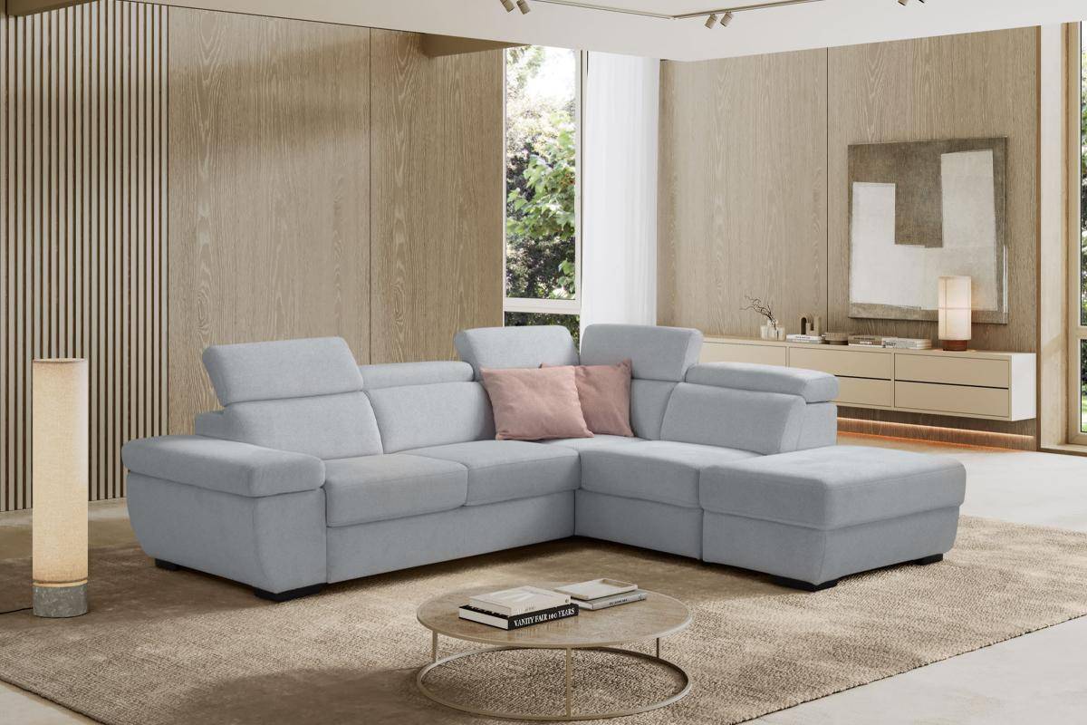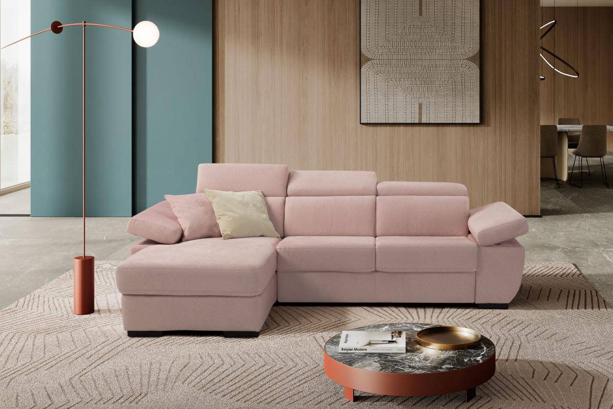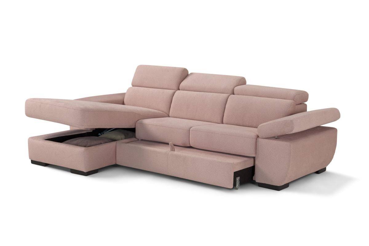 Divano con carrello estraibile e chaise longue, braccioli regolabili, in tessuto Penelope.