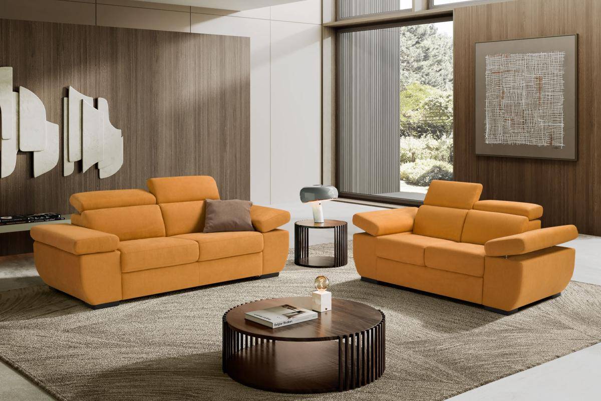Divano 2 posti fisso con braccioli regolabili, in tessuto Penelope.