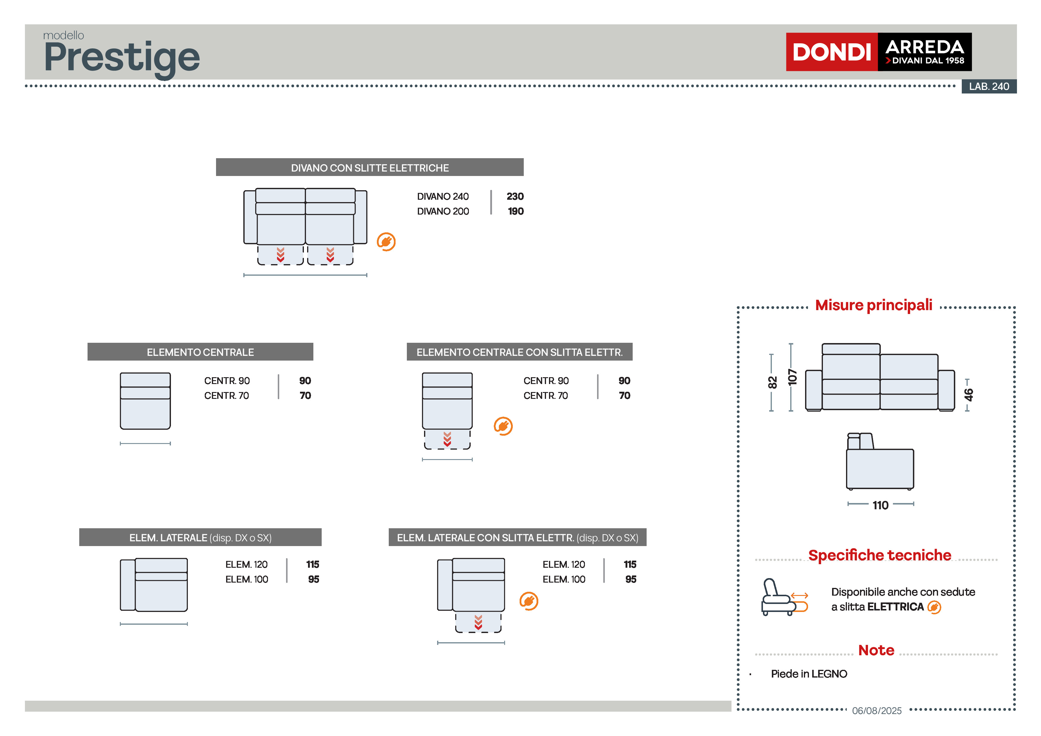 Dimensioni: L. 230 x P. 110 x H. 82/107 cm