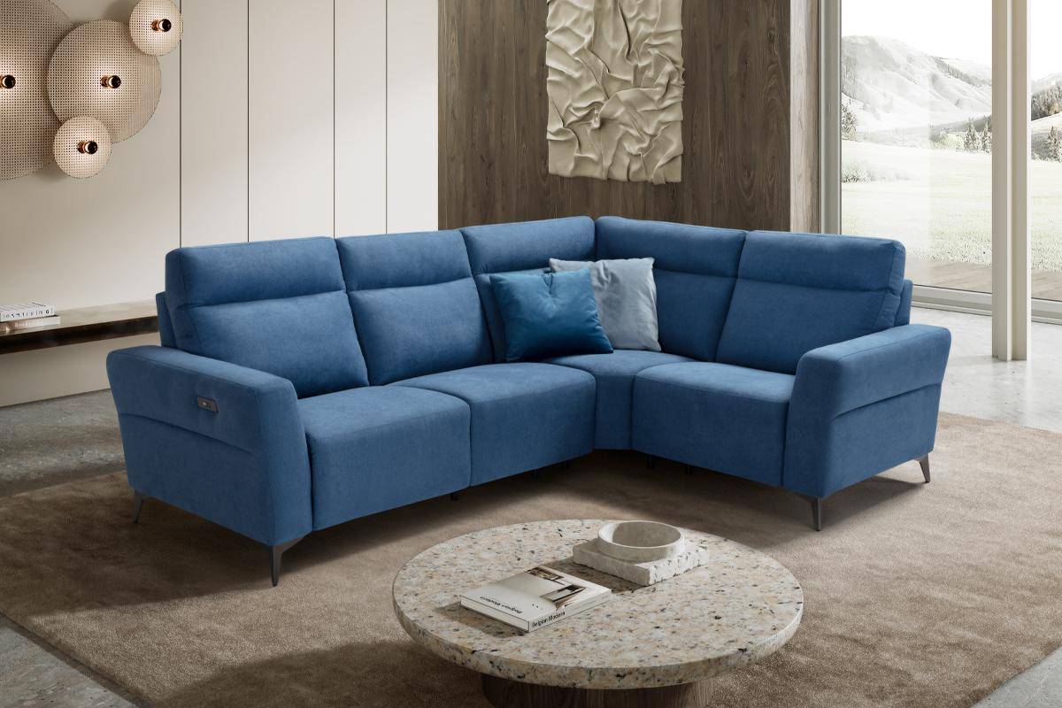 Angolo terminale con seduta relax elettrica, in tessuto antimacchia.