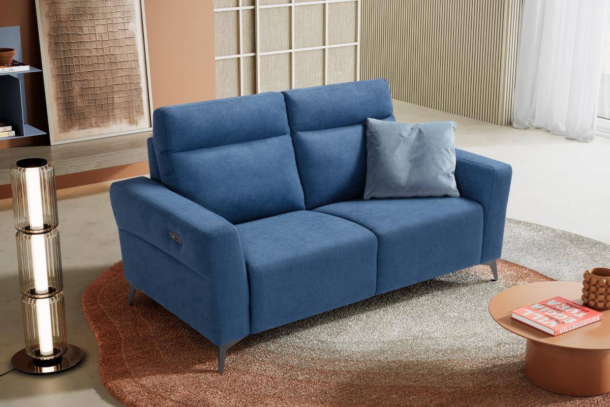 Divano 2 posti con una seduta relax elettrica, in tessuto antimacchia.
