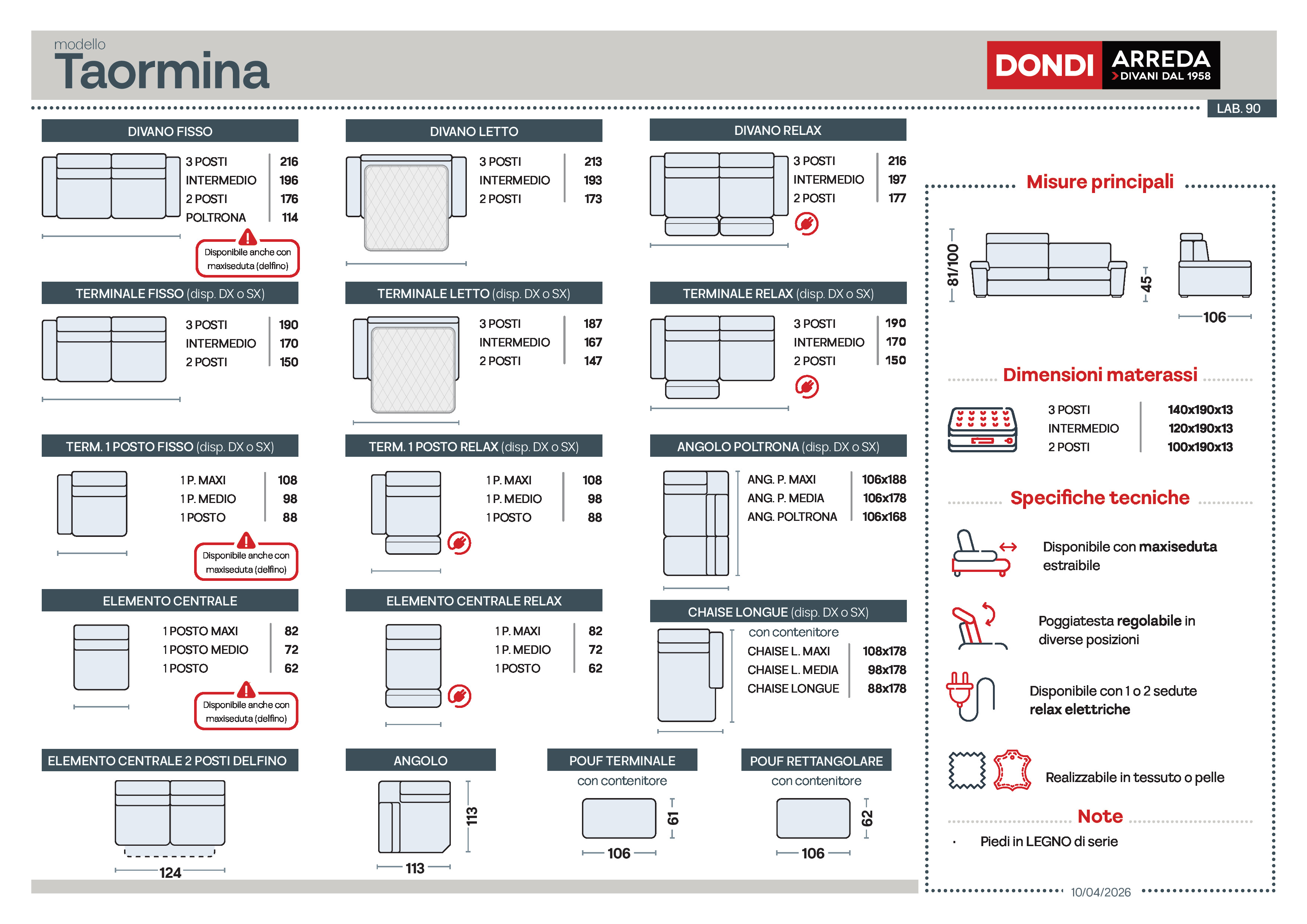 Dimensioni: L. 263 x P. 175 x H. 81/100 cm